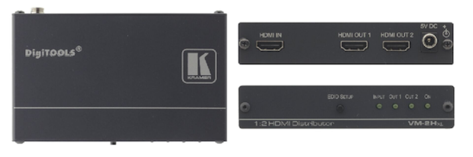 Le VM−2Hxl est un distributeur amplificateur pour les signaux HDMI. Il régénère et égalise le signal et le distribue vers 2 sorties identiques.
