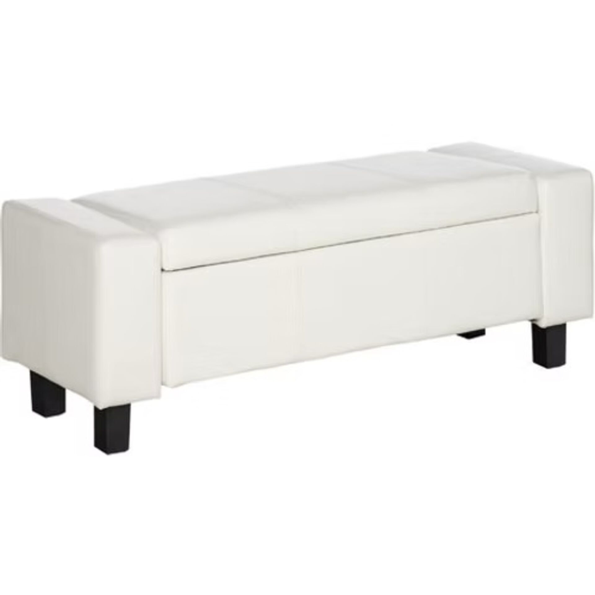 HOMCOM Banc coffre de rangement 2 en 1 revêtement synthétique capitonné 106L x 40l x 40H cm blanc
