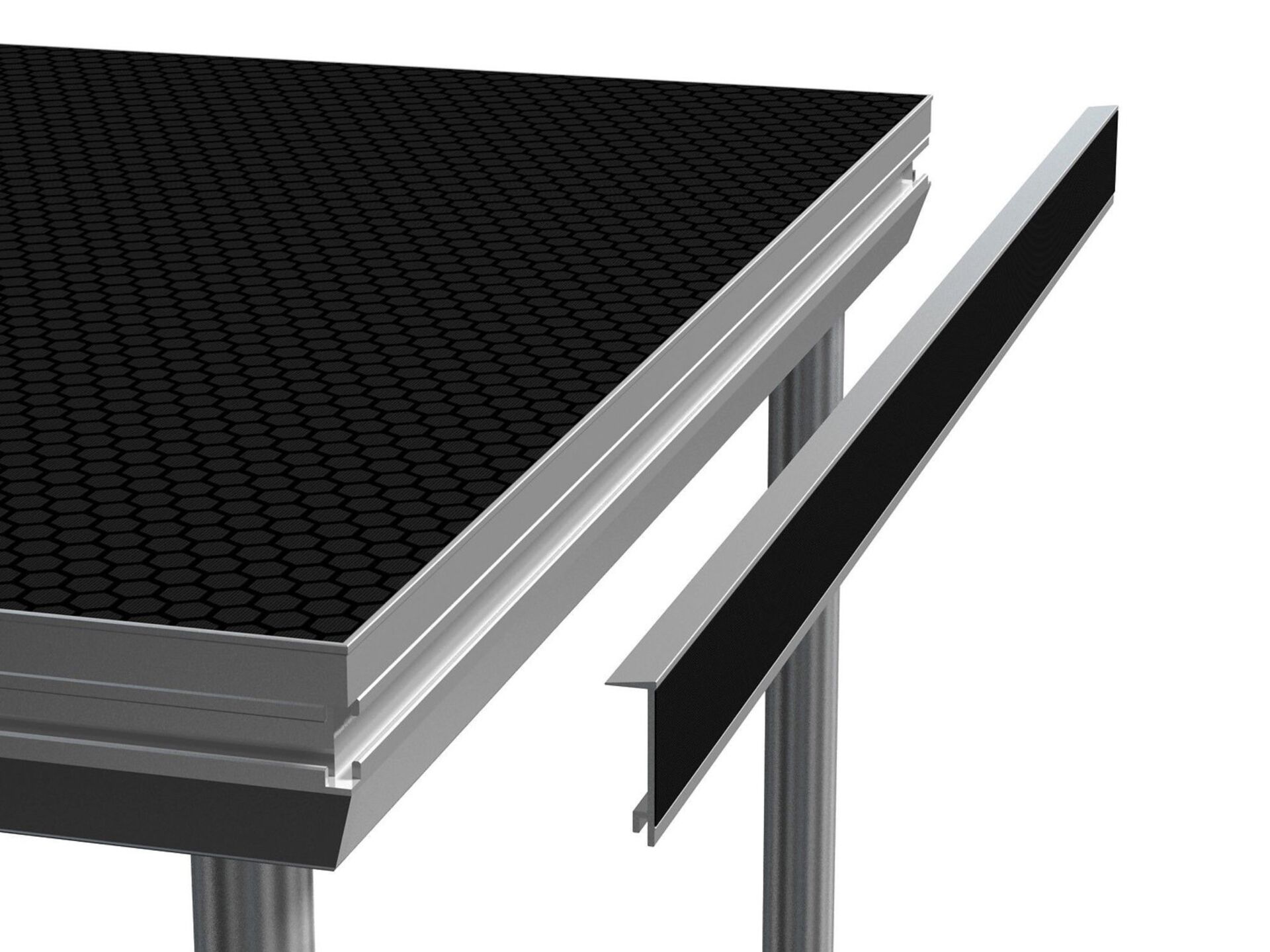 Profil de fixation en aluminium pour fixer des jupes de scène sur les praticables. Avec système de fixation à crochets et boucle.Convient pour les praticables :- Deck750 (182.100)- Spiderdeck (182.241)- Deck750PL (182.050)
