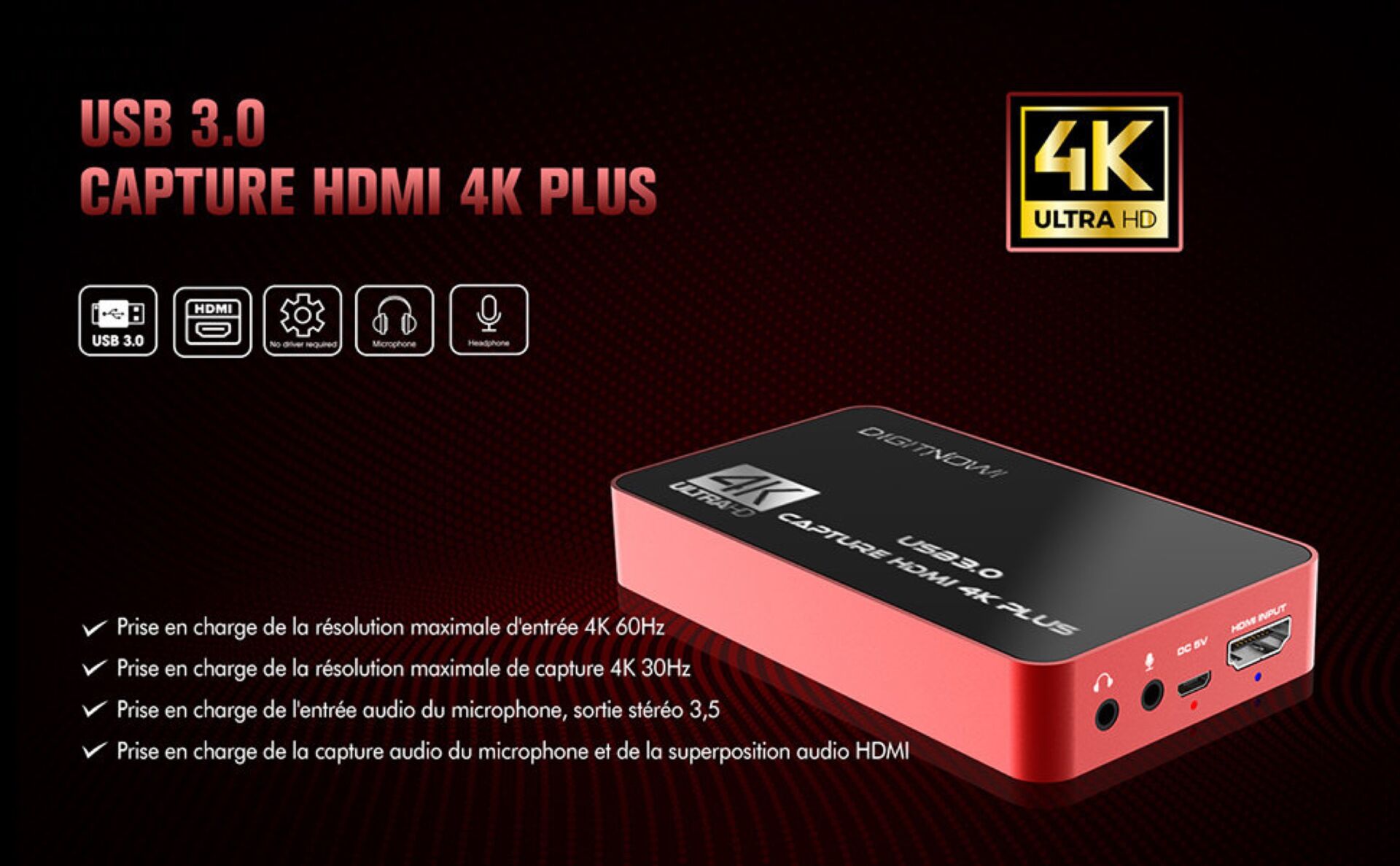 4. Prise en charge de la résolution maximale de capture 4K 30Hz;
