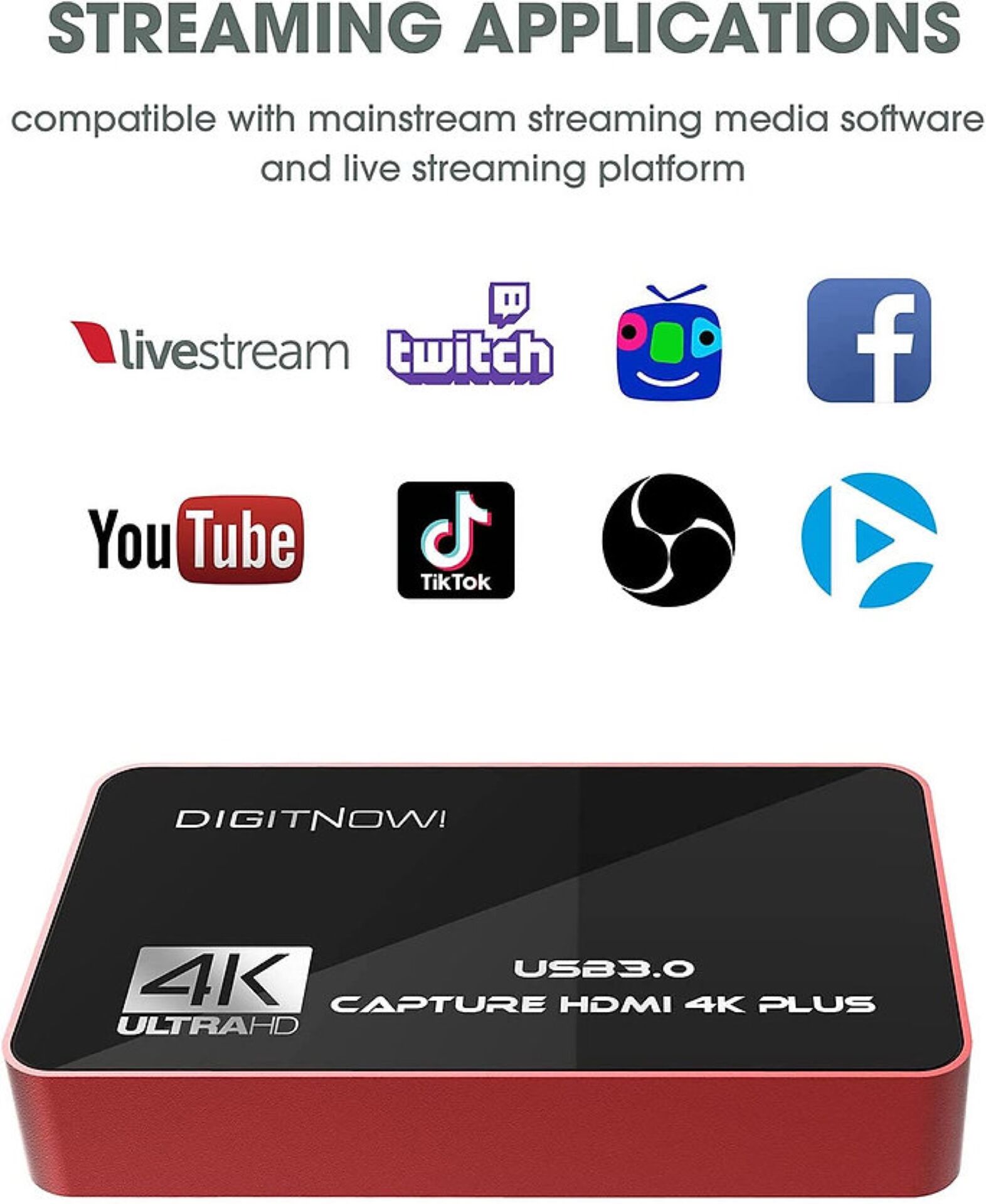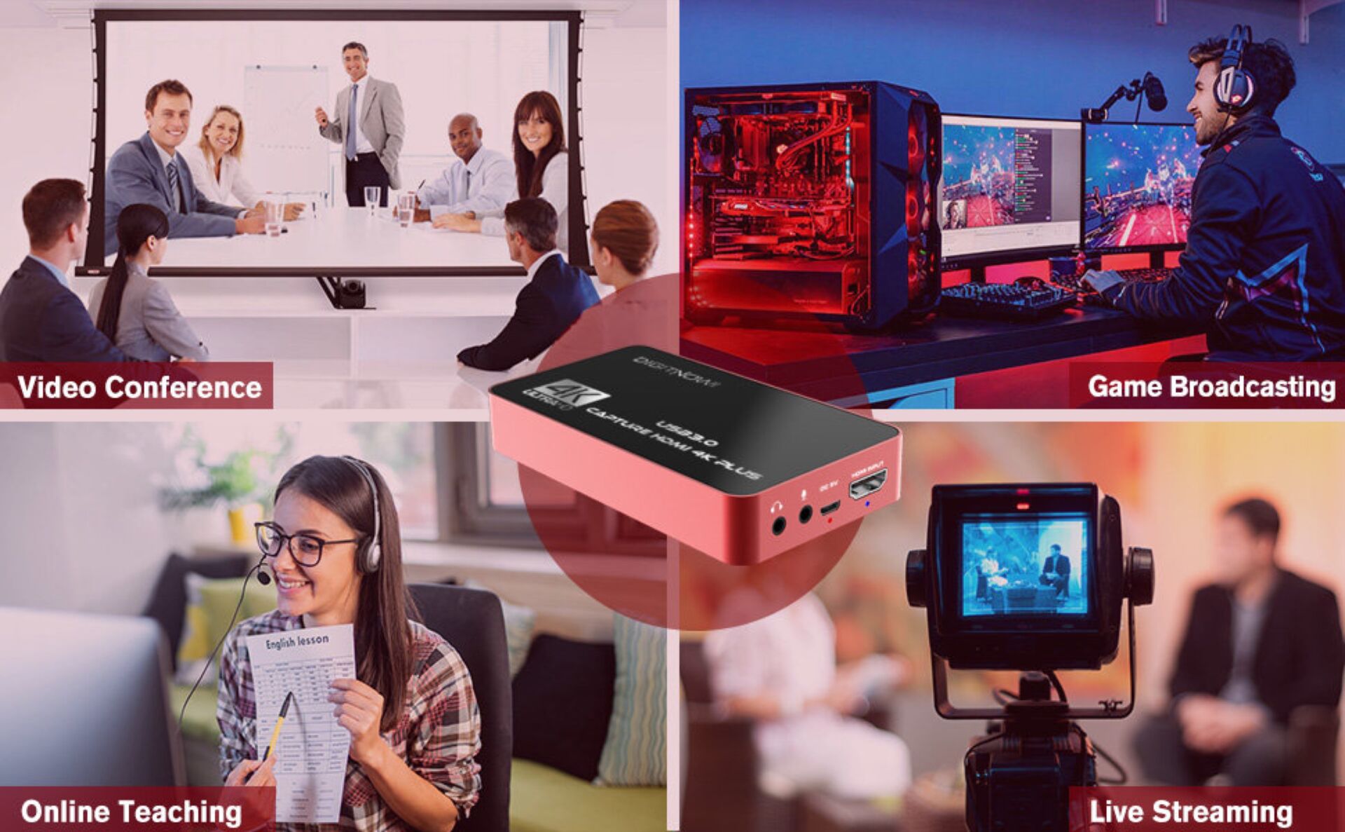 Notre carte de capture prend en charge une résolution d'entrée maximale jusqu'à 4K 60Hz et capture une résolution maximale en 4K 30Hz, il suffit de la brancher sur votre PC (Windows, Mac, Linux), pas besoin d'installer de pilote, vous pouvez utiliser n'importe quel logiciel tiers pour capturer ou diffuser votre HD jeu ou autre source vidéo HD. Prise en charge de l'entrée audio du microphone, sortie stéréo 3,5; Il peut également être utilisé comme dispositif de partage d'écran pour les réunions sur Internet, partageant facilement des présentations, des diapositives, des feuilles de calcul, des documents et des enregistrements vidéo dans des réunions en ligne.