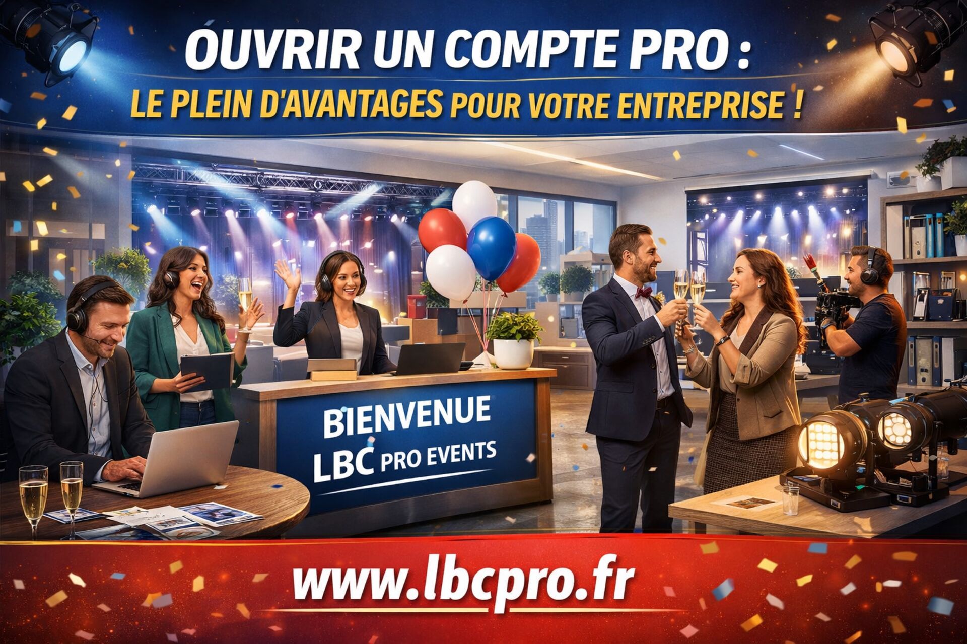 En ouvrant un compte pro chez LBC PRO EVENTS , vous bénéficierez d'une équipe dédiée, de services sur mesure, d'avantages pour votre entreprise, et d'une relation professionnelle de qualité et durable.