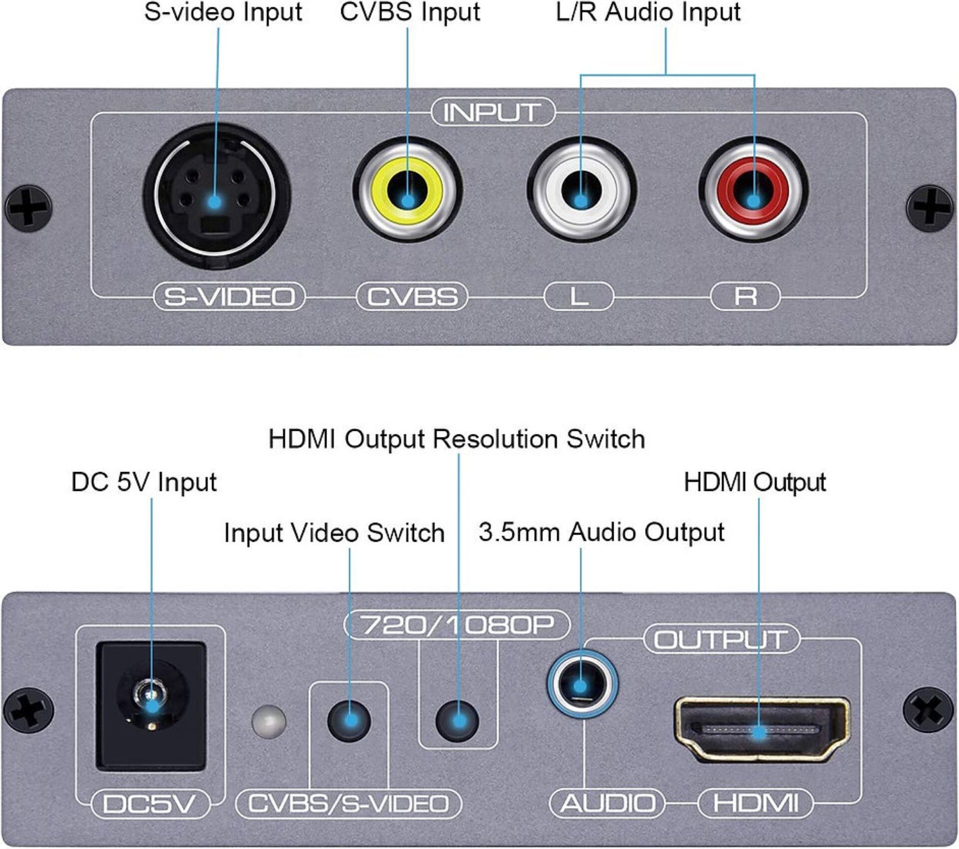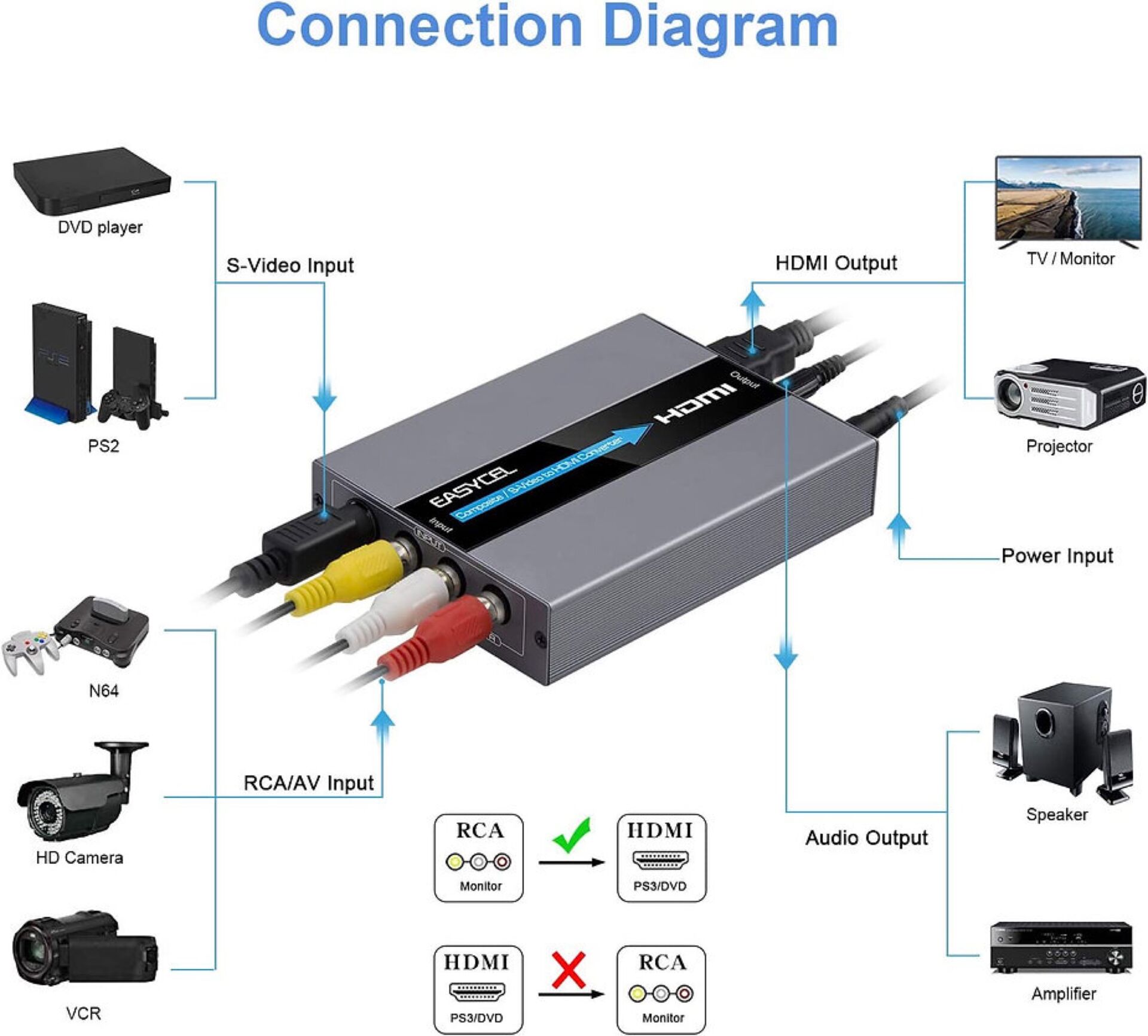 Le convertisseur S-vidéo RCA Easycel vers HDMI convertit les signaux vidéo RCA (AV, composite, CVBS) ou S-vidéo en signaux HDMI afin que vous puissiez regarder la vidéo sur un téléviseur moderne avec entrées HDMI.