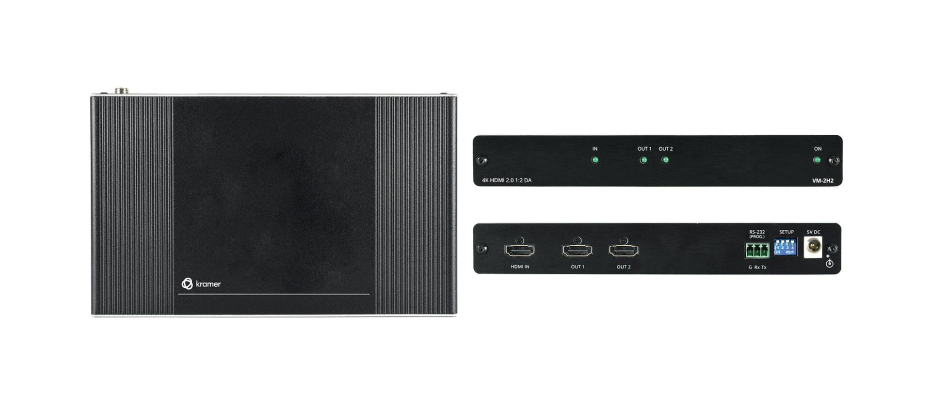 Le VM−2H2 est un distributeur amplificateur pour signaux HDMI 4K HDR conforme au standard de protection du contenu HDCP 2.2. Le produit accepte une entrée HDMI, reclock et égalise le signal et le distribue sur 2 sorties identiques.
