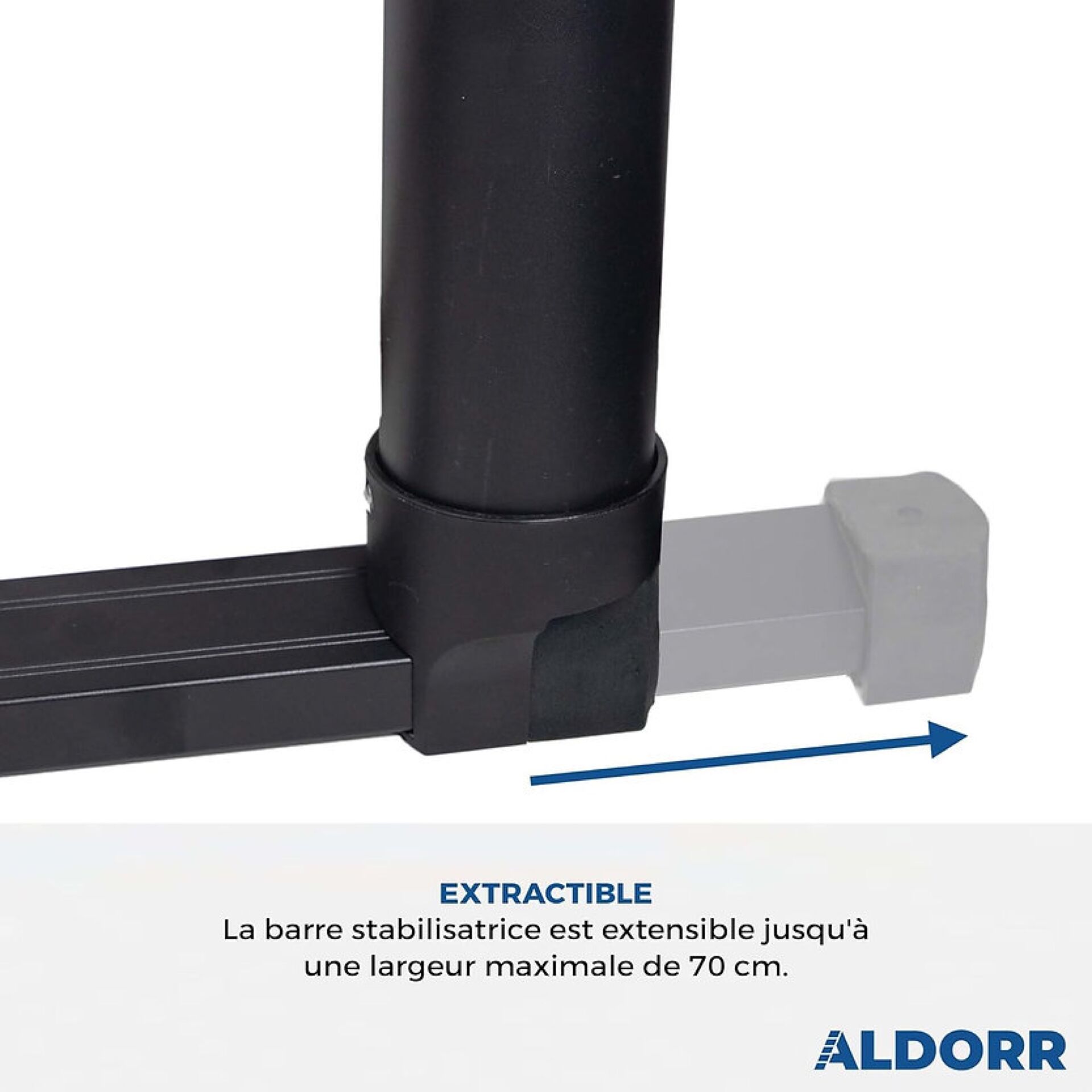 L'échelle télescopique ALDORR Home est une échelle robuste en aluminium anodisé avec un revêtement protecteur. Elle est équipée de 11 marches et d'une large barre de stabilisation offrant un soutien et un confort supplémentaires lors de son utilisation. Le mécanisme de fermeture en douceur sécurisé permet de travailler en hauteur en toute sécurité et de plier l'échelle sans risque pour les doigts. De plus, des indicateurs pour chaque marche permettent de vérifier si elles sont entièrement sécurisées et si l'échelle peut être montée en toute sécurité. Conforme aux normes EN 131.6 et à la législation sur les marchandises, cette échelle offre une hauteur de travail maximale de 3,9 m et peut être utilisée à des longueurs variables entre 0,87 m et 3,20 m. Avec une charge maximale de 150 kg, elle est très stable.