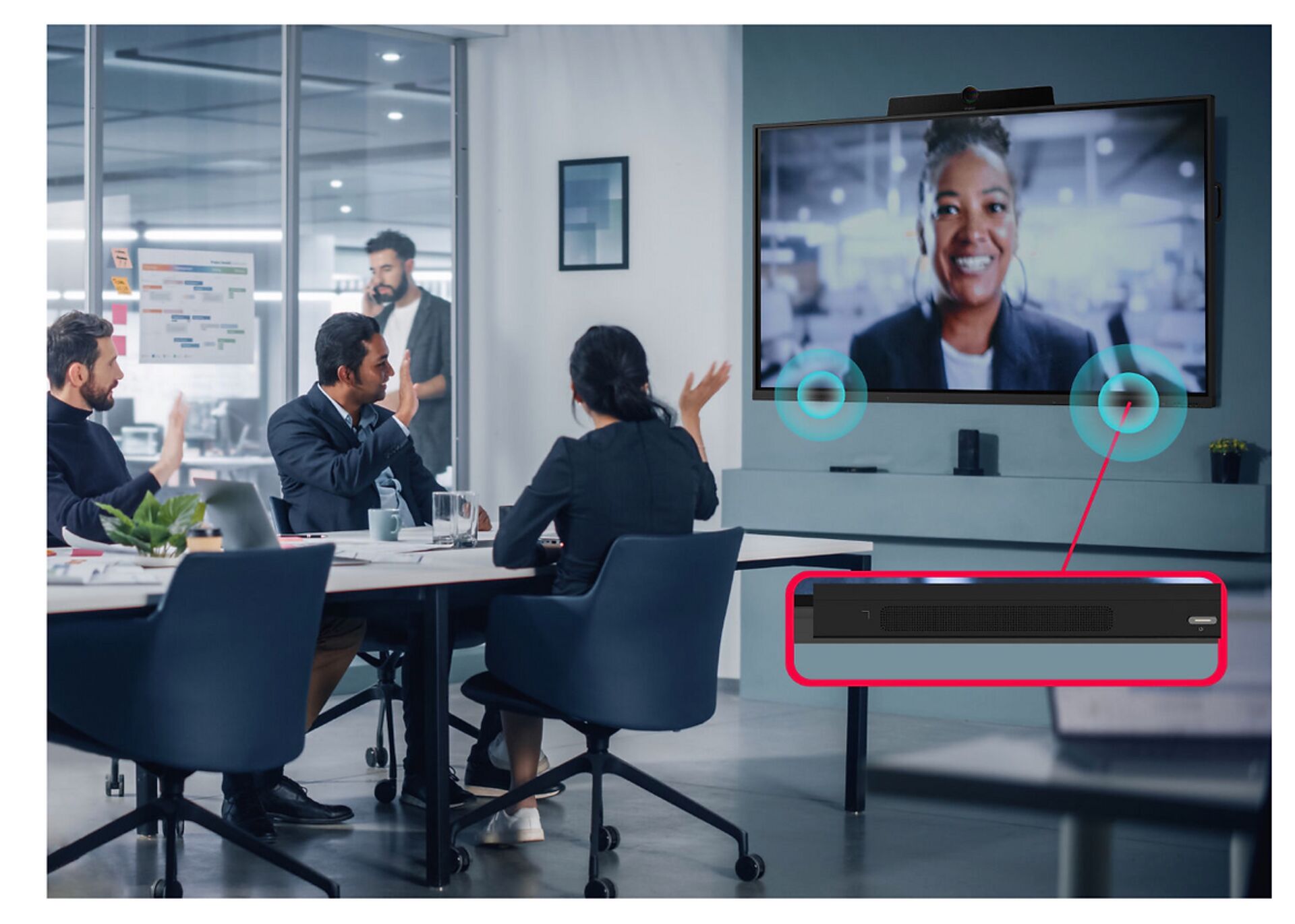 Les haut-parleurs intégrés de haute qualité permettent des configurations de conférence.