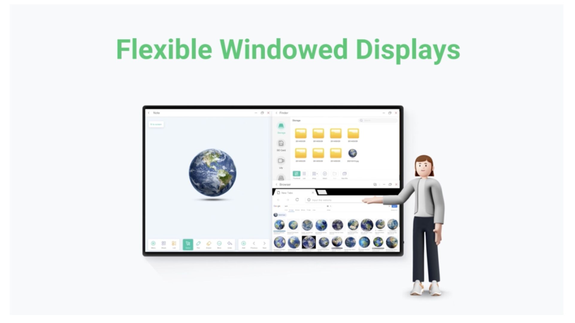 Optimisez vos présentations avec iiWare 13E qui intègre Google EDLA, iiyama DMS, iiyama Share, Note, un navigateur, un cloud drive via un logiciel intuitif et convivial qui vous permet de gérer, de personnalise et d'accéder facilement à diverses applications.