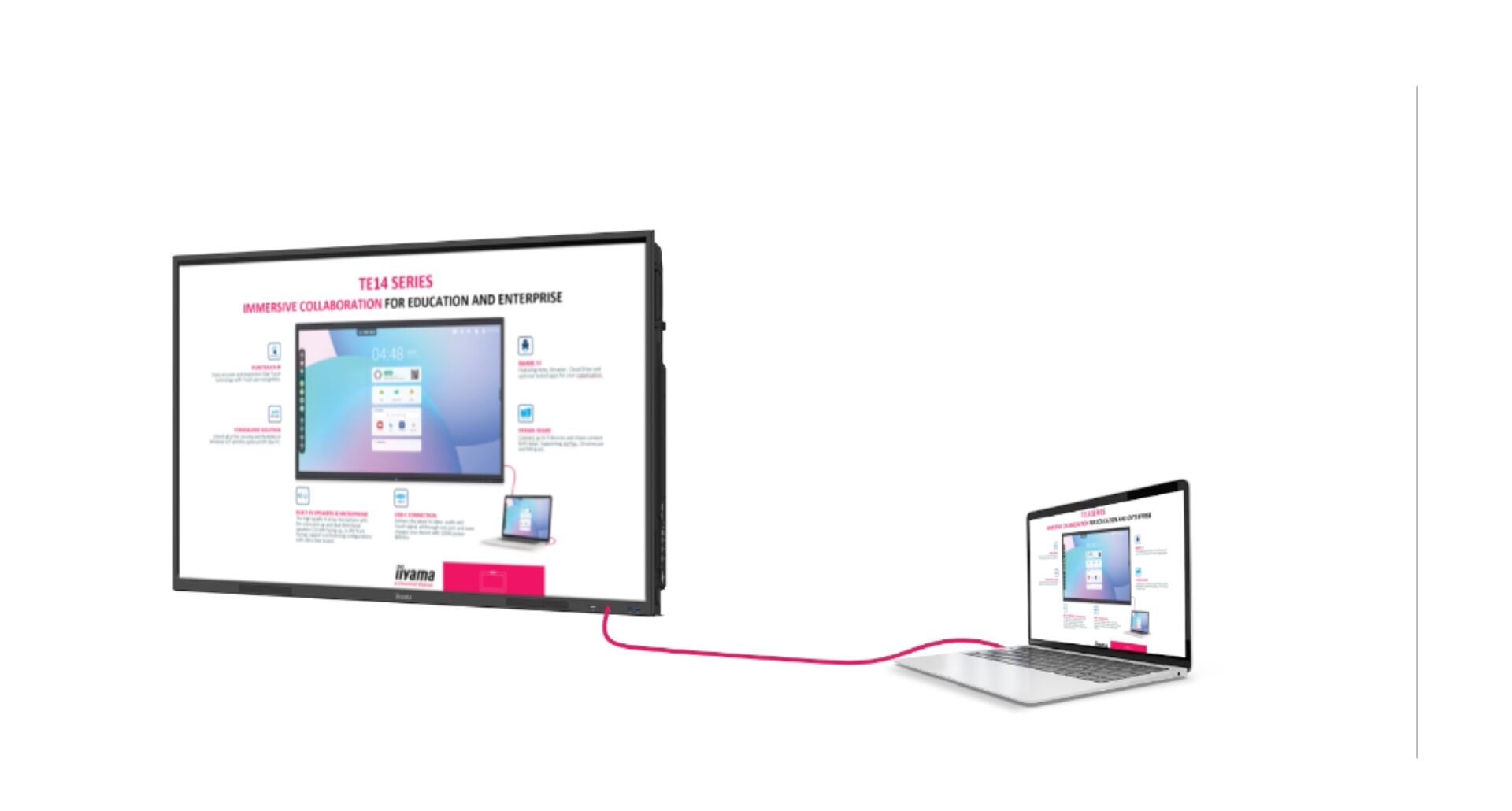 Connectez jusqu'à 9 appareils et partagez, diffusez et éditez facilement du contenu depuis votre appareil vers votre écran interactif et vice versa, vers votre ordinateur portable, votre tablette ou votre téléphone. iiyama Share prend en charge AirPlay, Chromecast et Miracast.