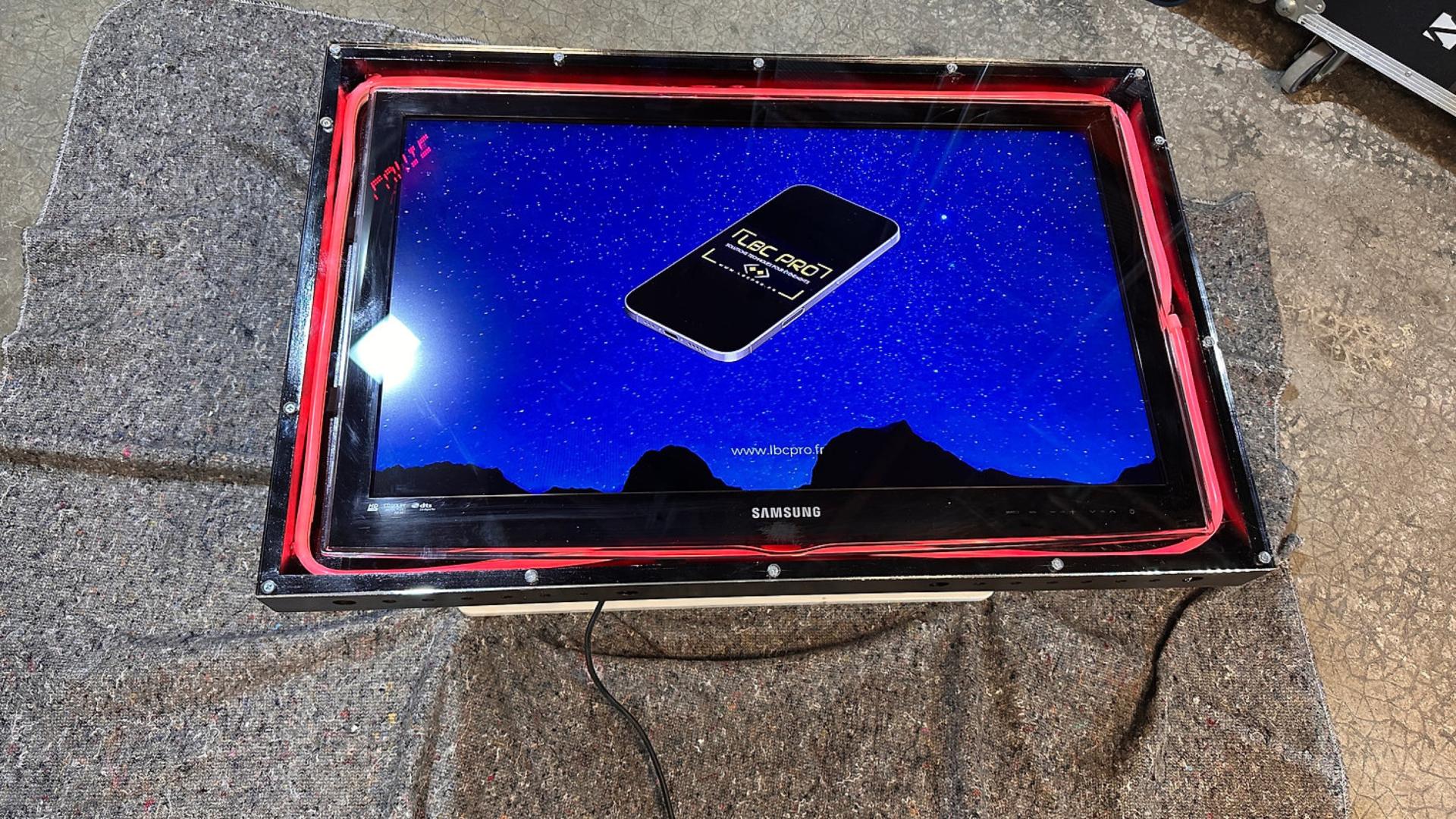 ECRAN PLAT 32 POUCES INTEGRE DANS TABLE BASSE