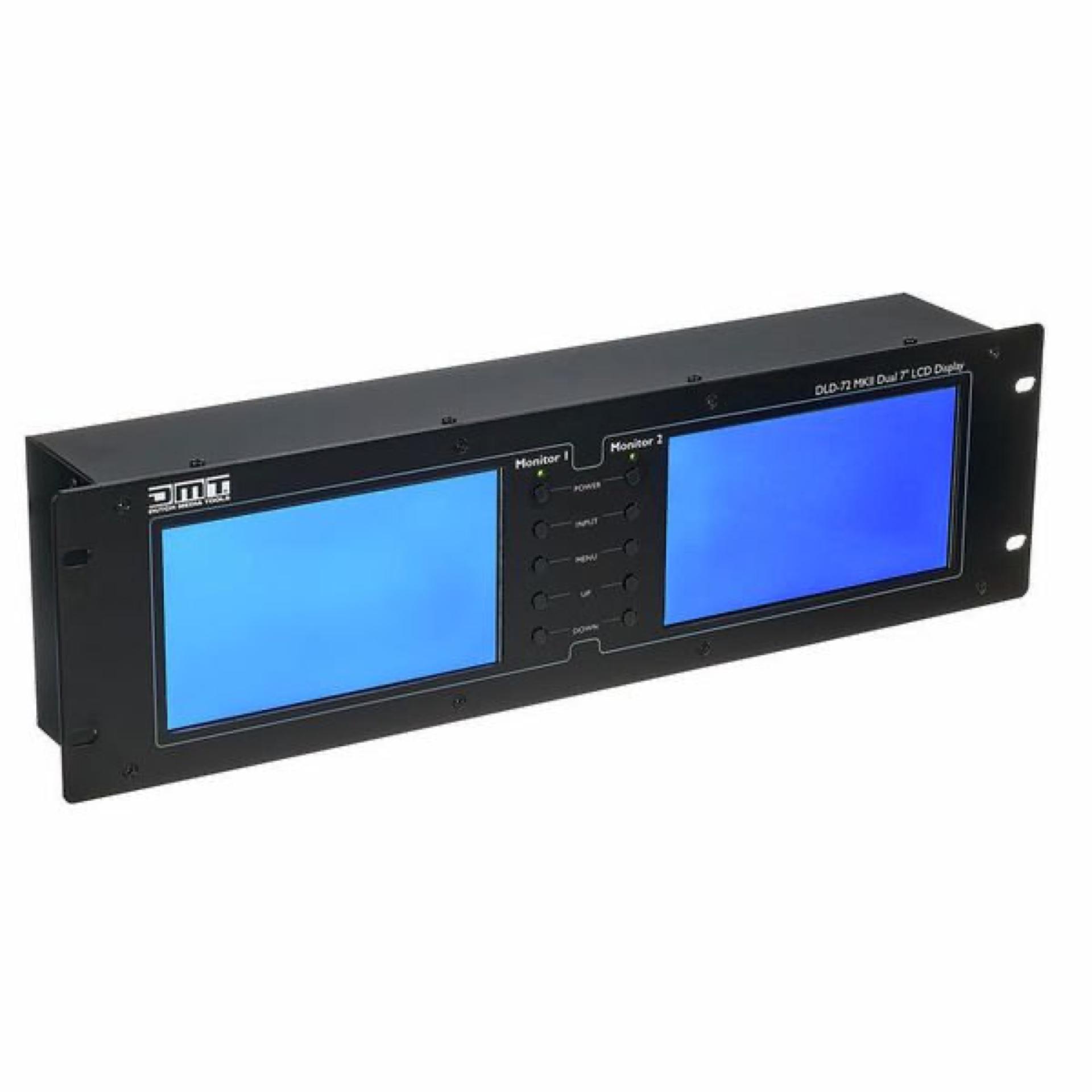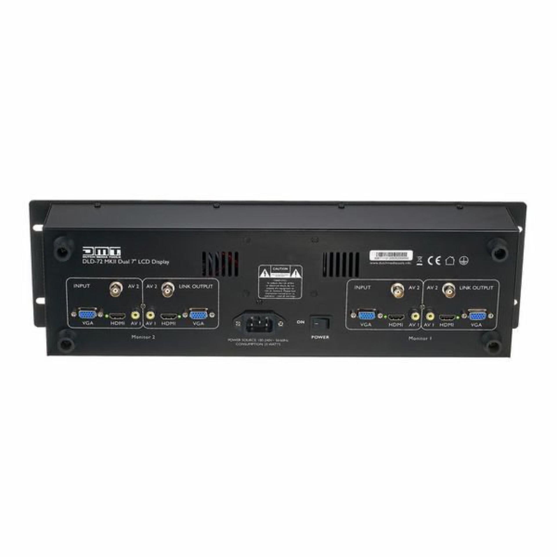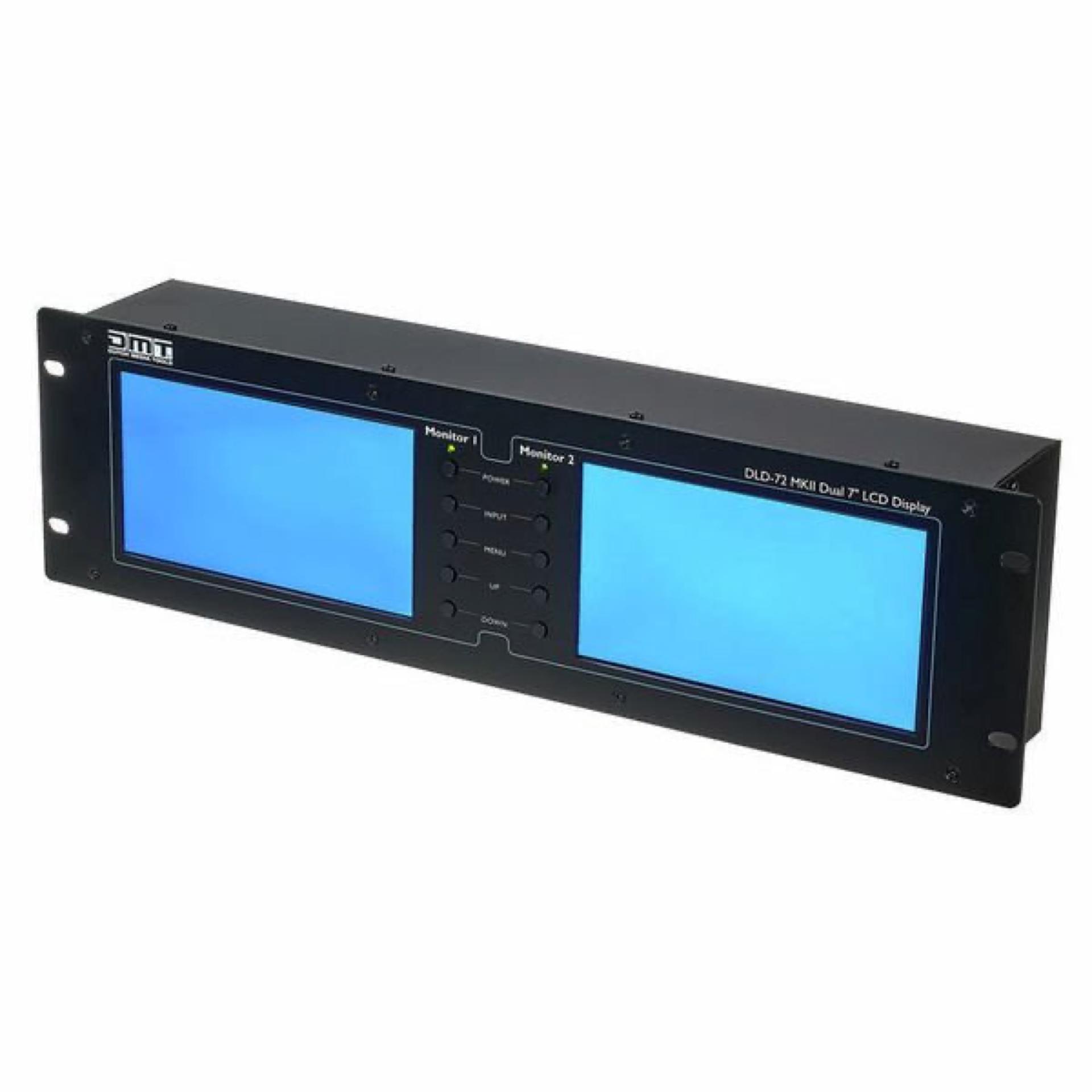 Le DLD-72 MKII peut être utilisé pour le monitoring de VJ, les systèmes de monitoring et d'autres applications multimédia où le contrôle de l'image est nécessaire. Il est adapté aux sources VGA, CVBS et HDMI. Les sorties de liaison (Link) permettent de connecter plusieurs DLD-72 MKII en série. Le séparateur intégré garantit que le signal HDMI est transmis sans perte. Les deux écrans ont leurs propres menus qui vous permettent d'ajuster les paramètres de chaque écran individuellement