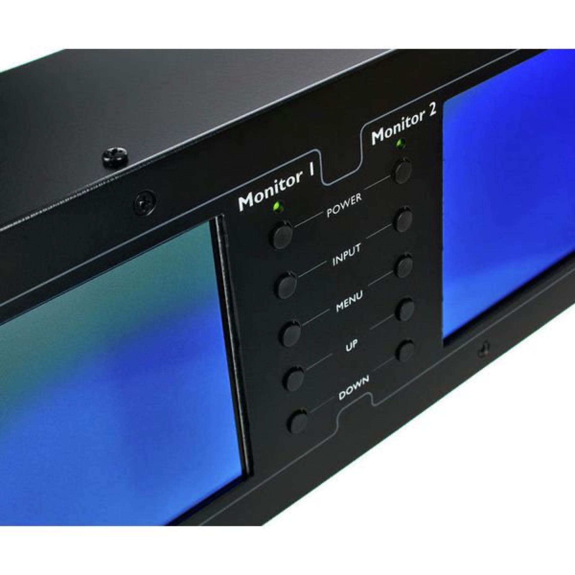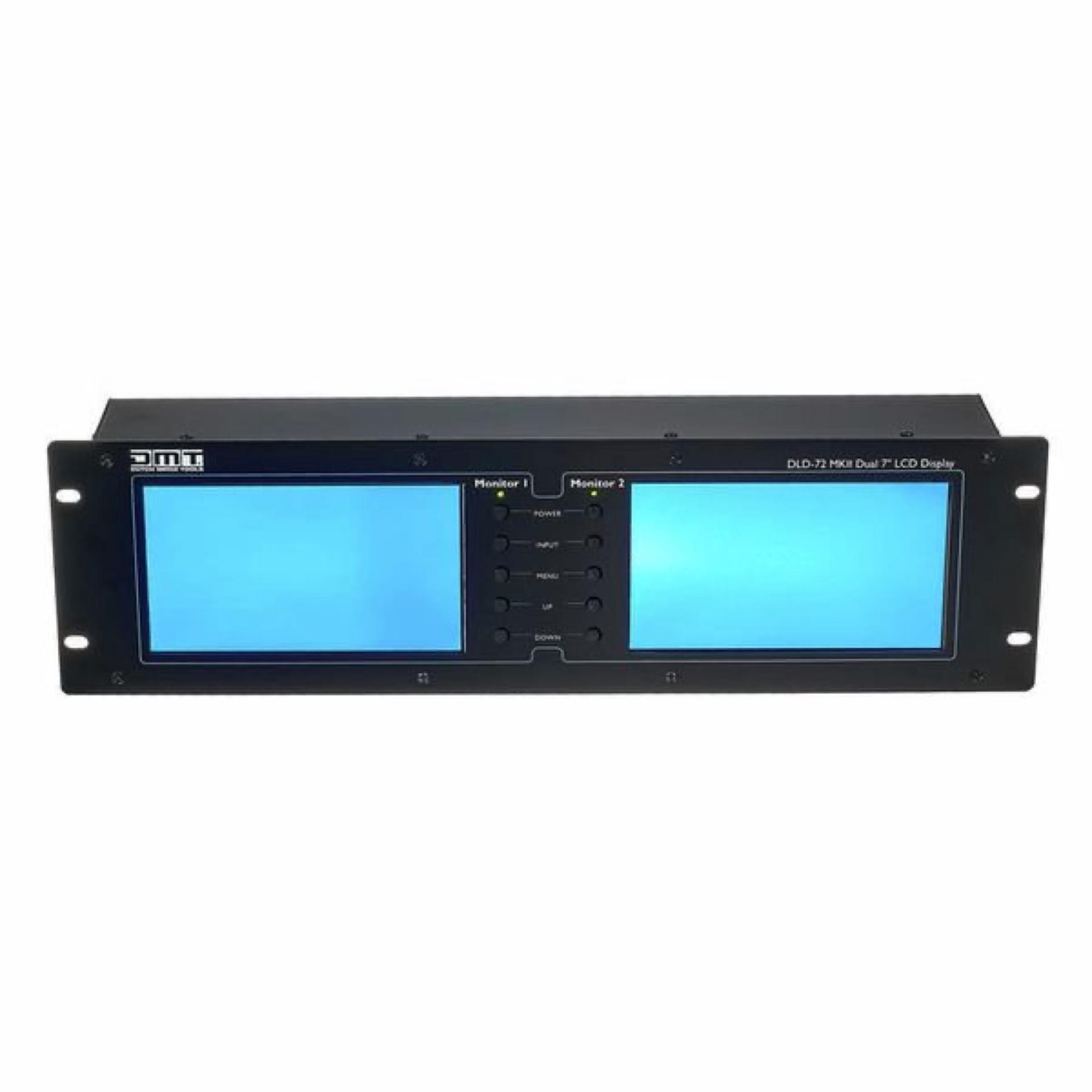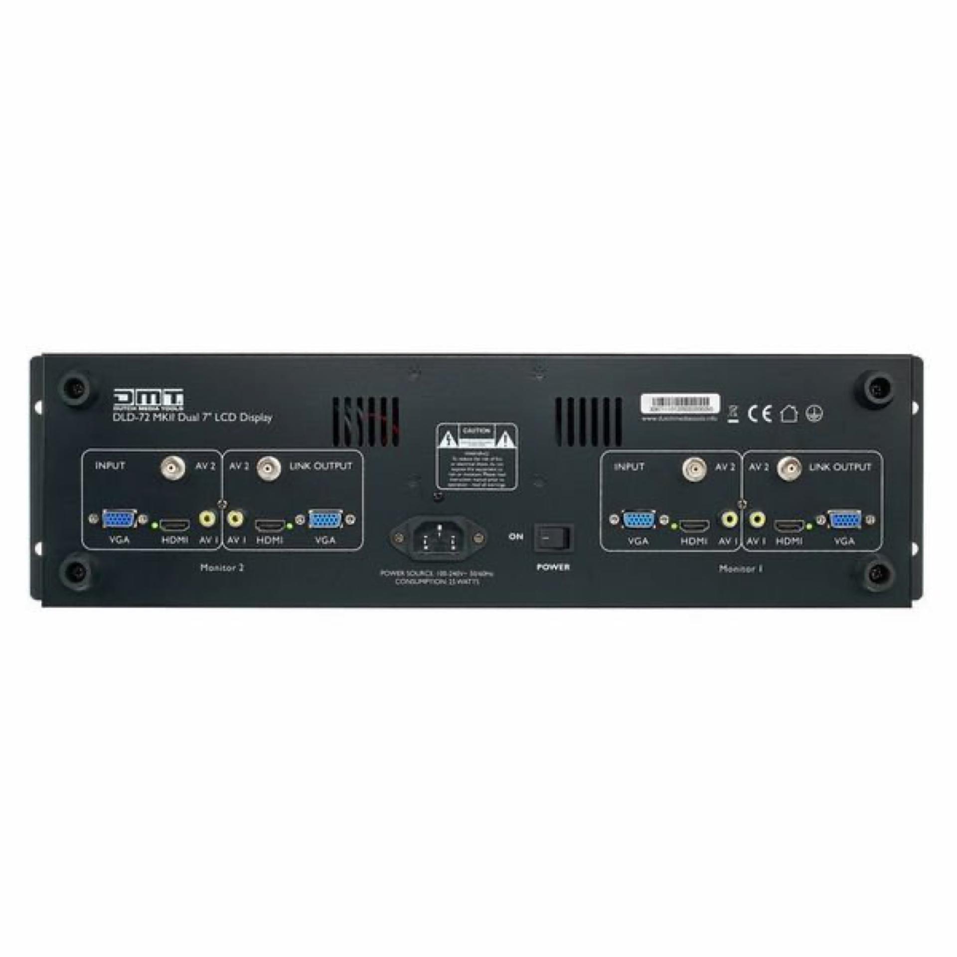 Le DLD-72 MKII peut être utilisé pour le monitoring de VJ, les systèmes de monitoring et d'autres applications multimédia où le contrôle de l'image est nécessaire. Il est adapté aux sources VGA, CVBS et HDMI. Les sorties de liaison (Link) permettent de connecter plusieurs DLD-72 MKII en série. Le séparateur intégré garantit que le signal HDMI est transmis sans perte. Les deux écrans ont leurs propres menus qui vous permettent d'ajuster les paramètres de chaque écran individuellement
