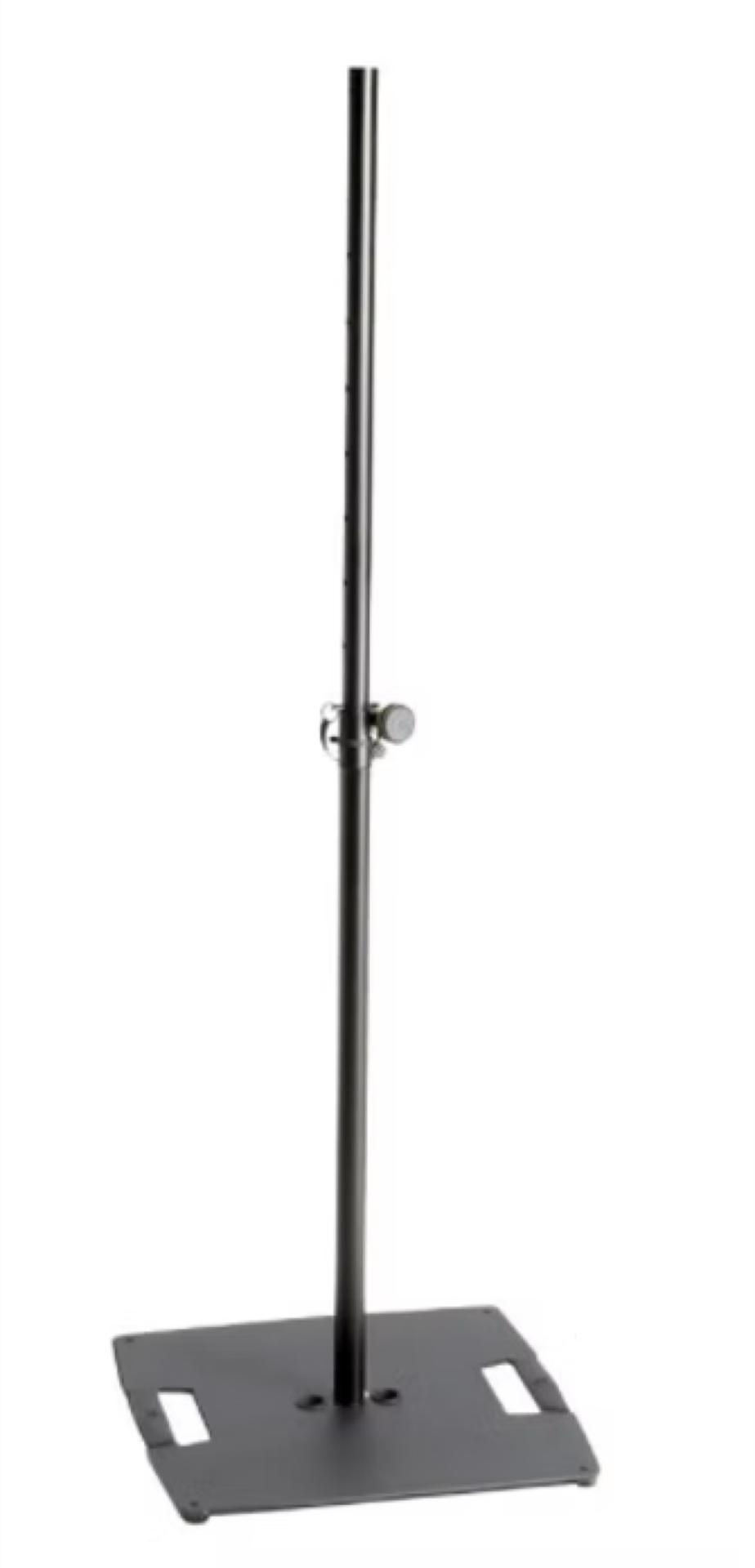 Pied d'enceinte ou lumière avec embase carrée en acier, barre 35 mm avec pas de vis M10 femelle, hauteur ajustable de 1420 2420 mm, charge max: 20 kg. Du matériel travaillé par des professionnels, pour des professionnels !