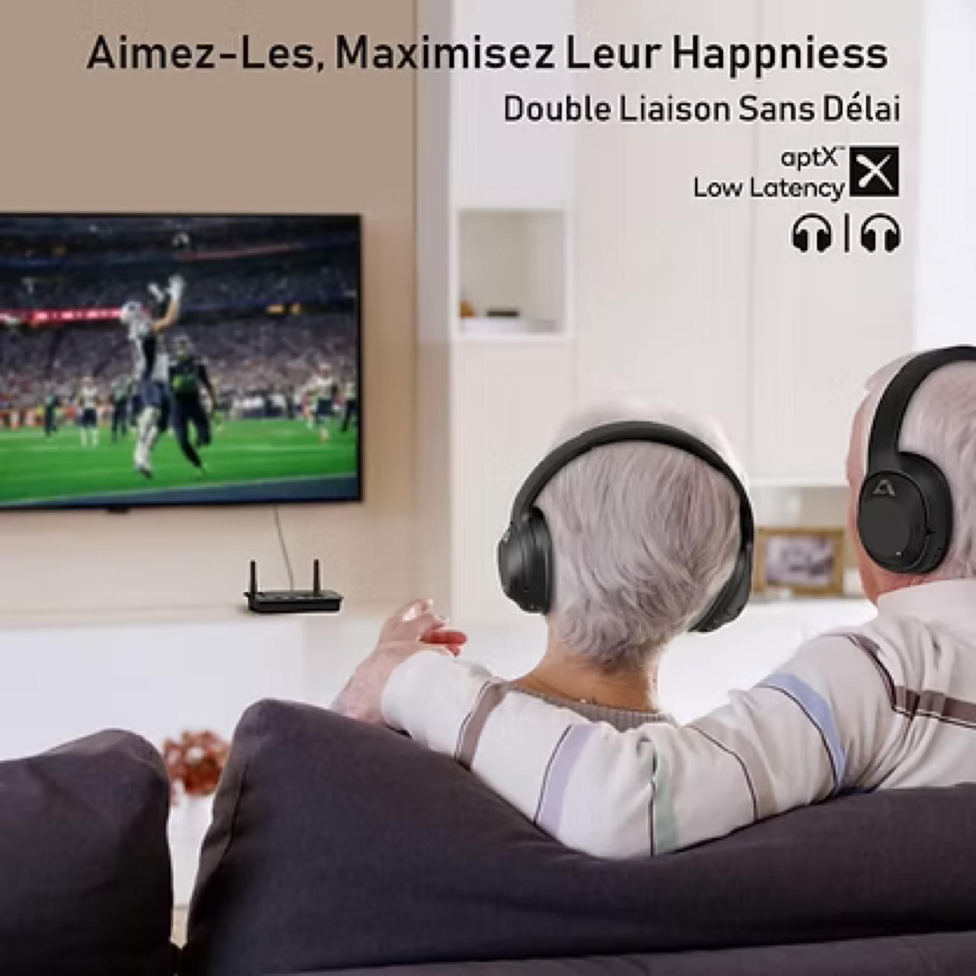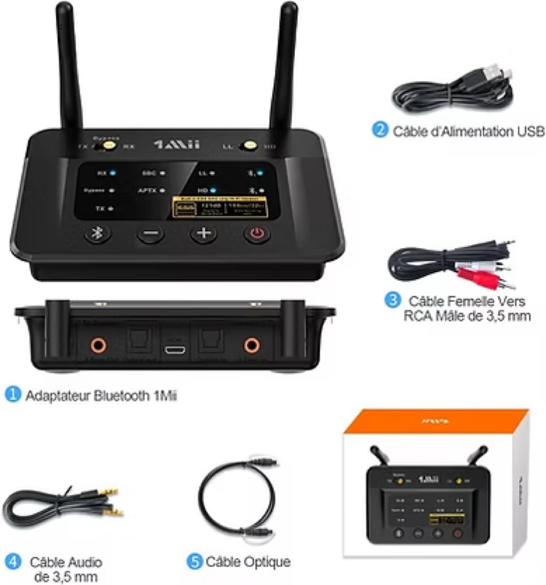 【Double Appariement & Dual Stream】1Mii B03Pro prend en charge le double lien simultanément, jumelez-le avec deux écouteurs Bluetooth ou deux haut-parleurs Bluetooth et profitez tous deux d'un streaming audio ultra-rapide. ** Pour obtenir une faible latence (<40 ms de retard), votre appareil récepteur doit également prendre en charge AptX Low Latency, ou vous pouvez rencontrer un retard de 70 à 220 ms **