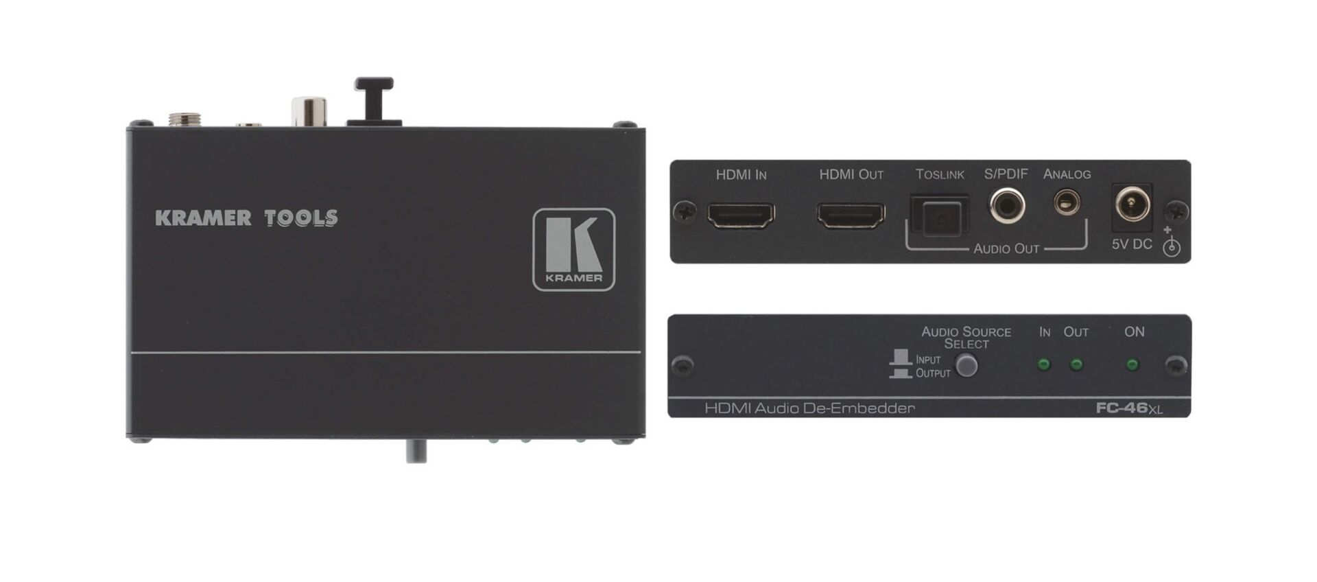 Le FC−46xl est un extracteur audio haute performance pour signal HDMI. Il extrait l'audio du signal HDMI ou du retour audio sur la sortie HDMI en S/PDIF, TOSLINK® et sorties audio analogiques simultanément.