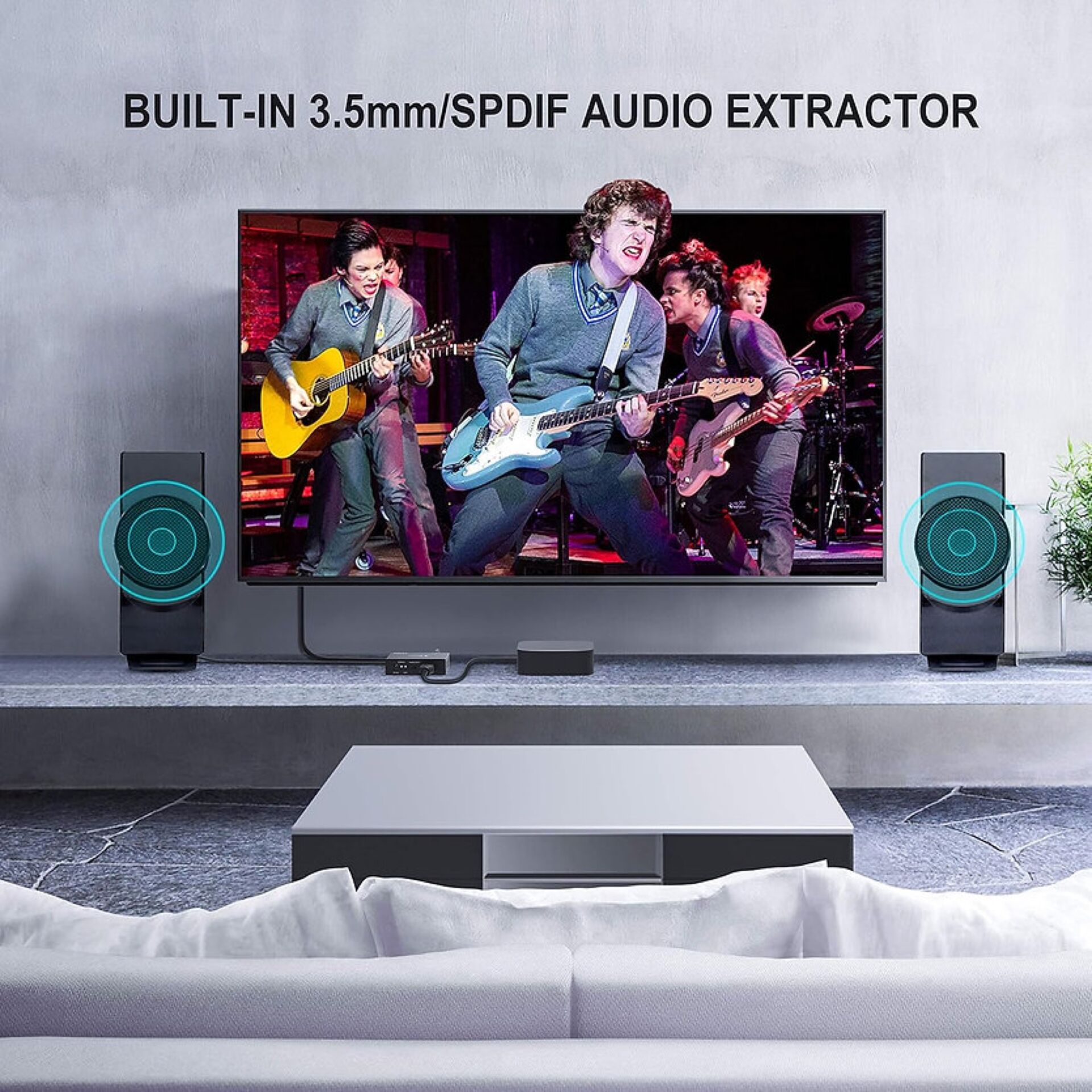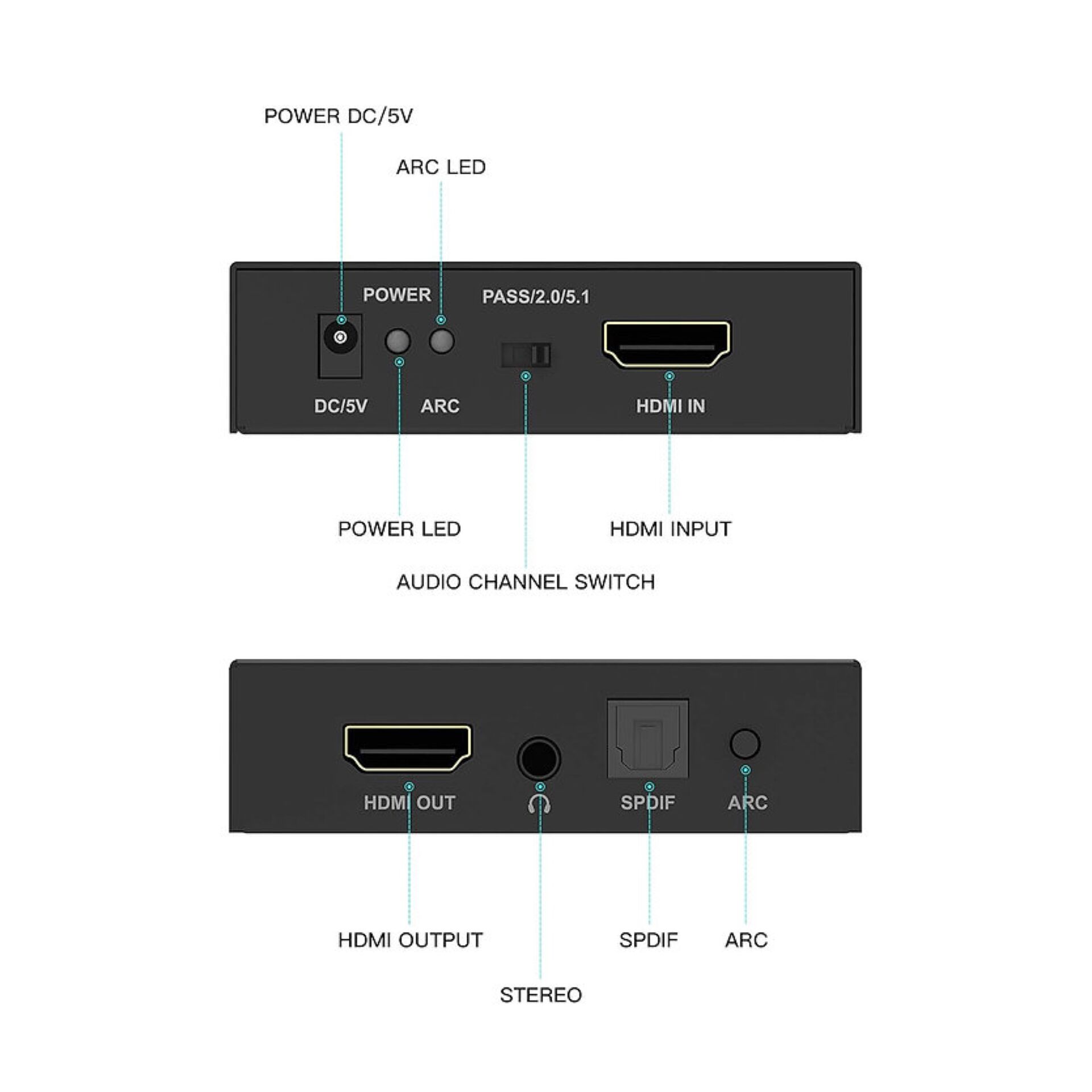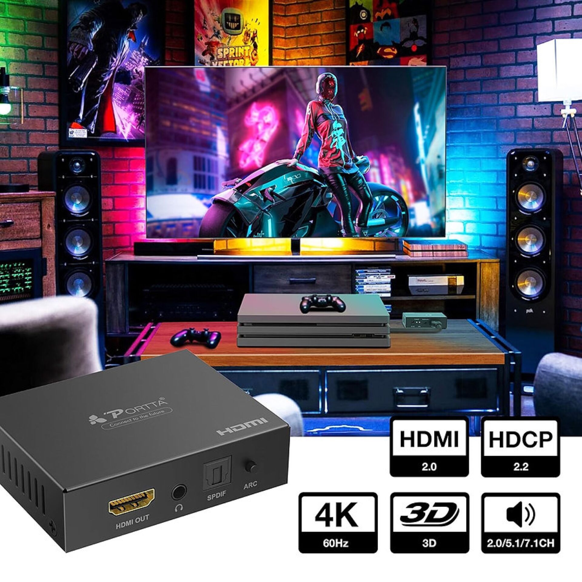 PORTTA HDMI Extracteur Audio 4K@60Hz HDMI vers HDMI+Audio (Optique SPDIF + RCA stéréo/3,5 mm) Convertisseur 2.1CH 5.1CH Extracteur Audio HDMI 4Kx2k