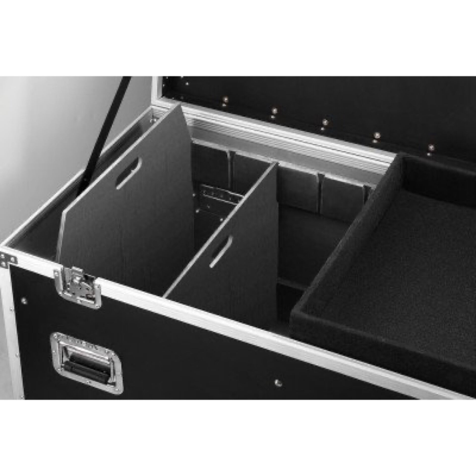 Empilable grâce aux échancrures pour roulettes dans le couvercle du flightcase