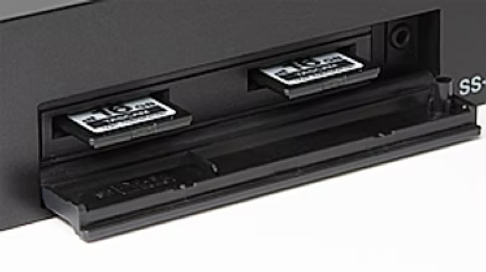 Grâce à ses deux slots pour carte SD, le SS-CDR250N assure une sécurité accrue pour vos fichiers de valeur par rapport à un enregistreur conventionnel. En effet, il permet de créer un backup en cours d’enregistrement, sur la seconde carte mémoire ; l’enregistreur peut aussi passer automatiquement à la seconde carte une fois que la première est pleine. Par ailleurs, l’appareil ferme automatiquement les fichiers en cas d’interruption de l’alimentation électrique en cours d’enregistrement, ce qui évite de perdre toutes les données enregistrées.