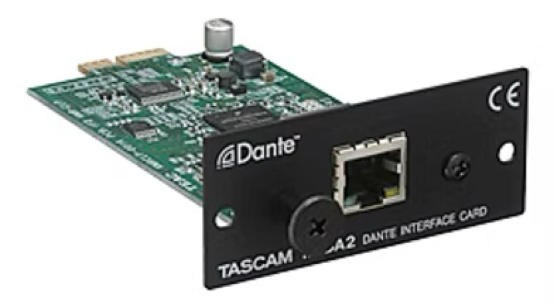 En installant une carte réseau Dante Tascam IF-DA2 (optionnelle), le SS-CDR250N/SS-R250N s’intègre facilement dans votre réseau Dante. Cette carte prend place dans un des slots d’extension du panneau arrière, et gère deux canaux audio en extraction (Out), deux en injection (In), jusqu’en 96 kHz / 24 bits.