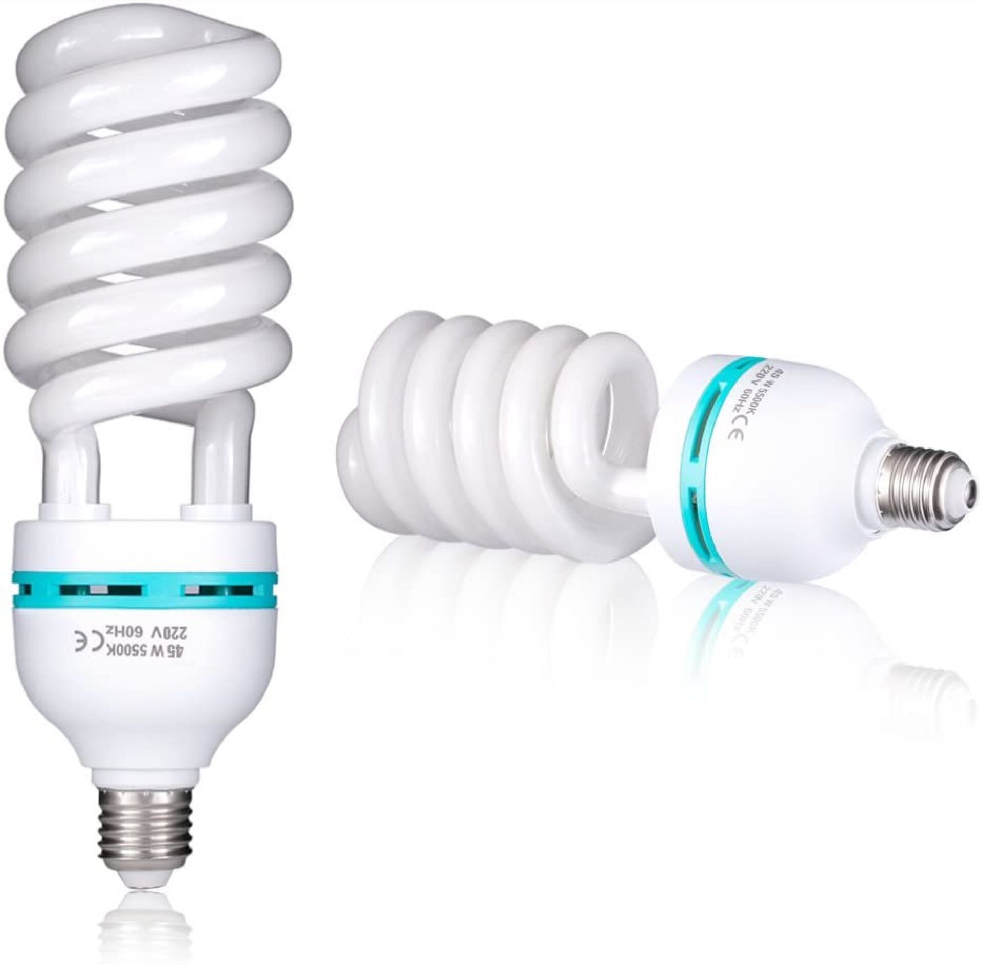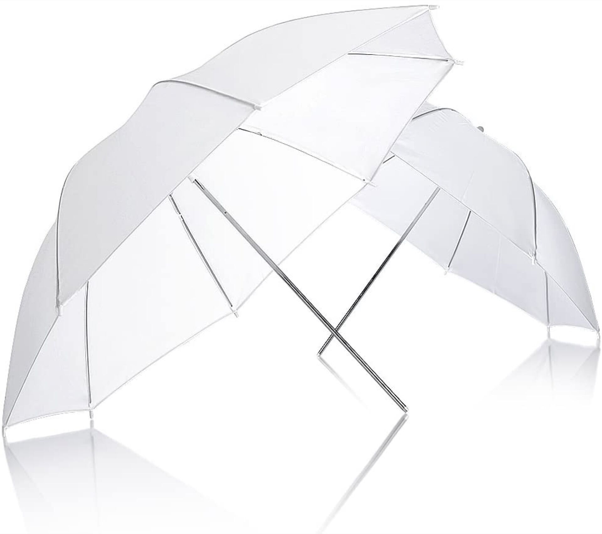 Deux parapluies réfléchissants ainsi que deux ampoules lumière du jour de 45 W offrent une puissante lumière continue et un éclairage uniforme.