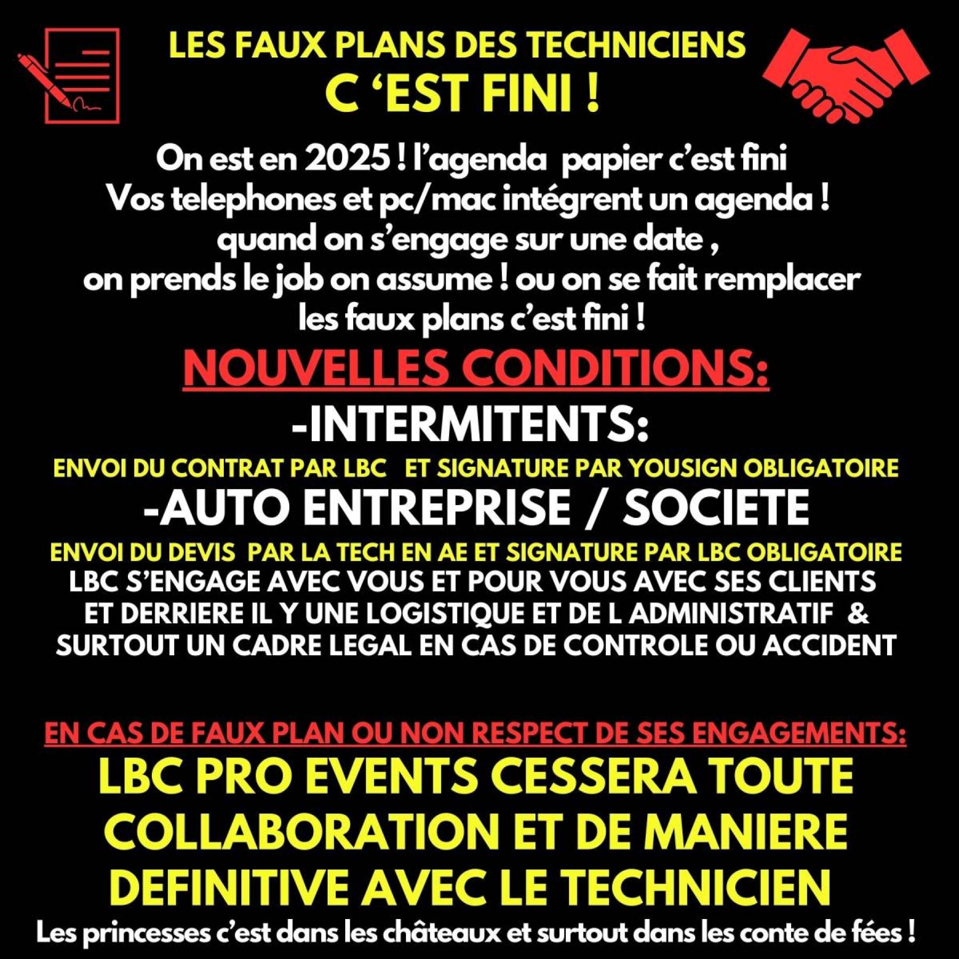 Tous les techniciens freelance qui collaborent avec LBC PRO EVENTS sont soumis a cette règle simple.