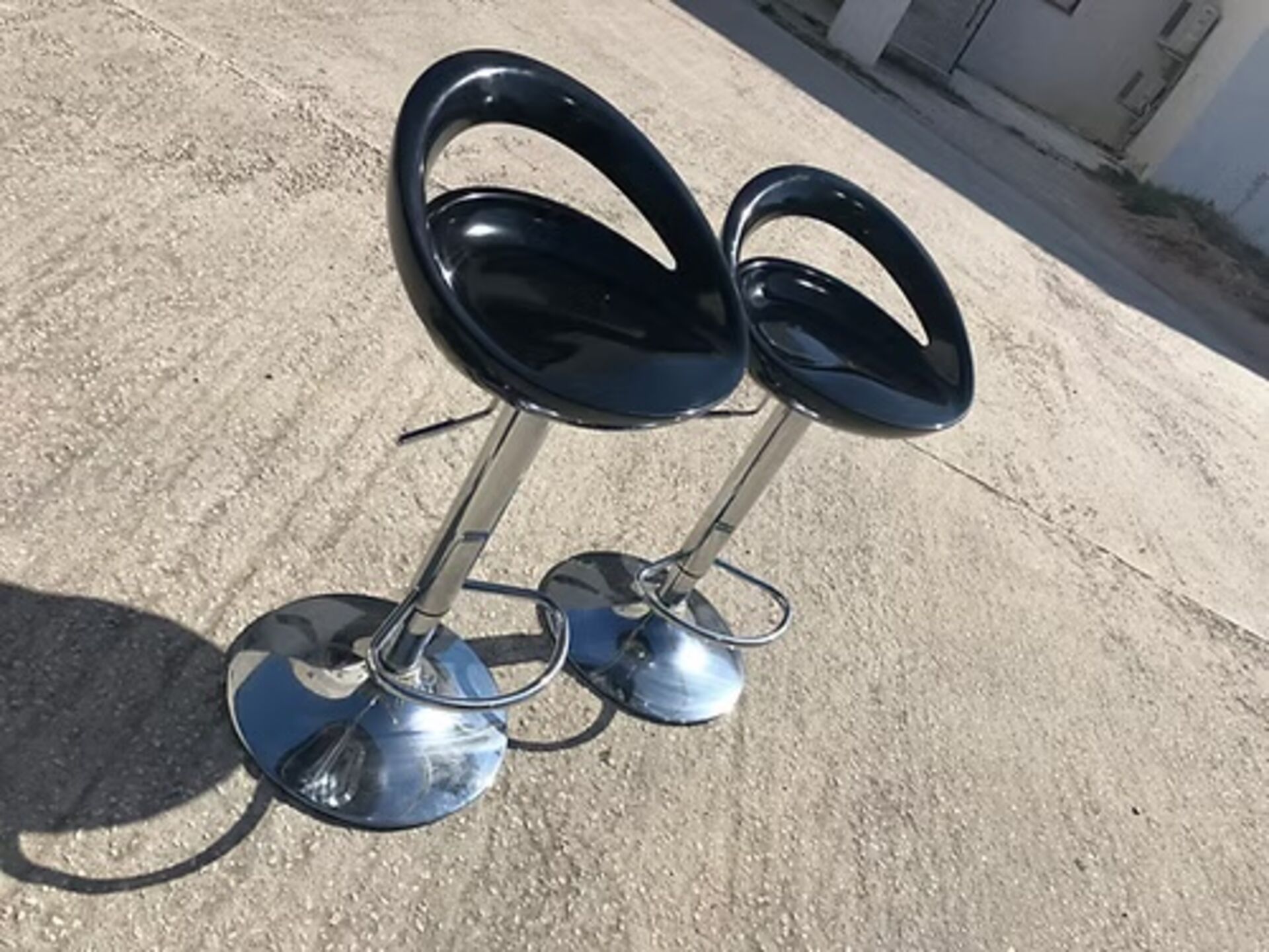 LOT DE 2 CHAISES DE BAR NOIRE PLASTIQUE