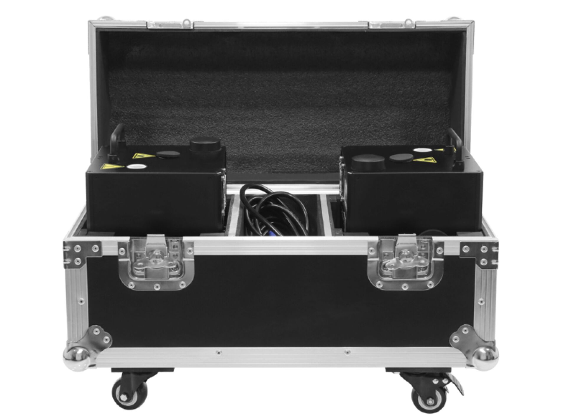 Evolite Evo Spark 600 Twin Set Set de 2 machines étincelles professionnelles + flight case Machine étincelles professionnelle La Evo Spark 600 n'est pas une machine utilisant de la pyrotechnie (combustion chimique). Cette machine utilise une poudre métallique (titane) chauffe électriquement, sans combustion. Temprature de sortie des étincelles : entre 30 et 50°C 50 cm de la buse de sortie Utilisation facile et sre Ne génére AUCUNE flamme Ne génére pas de fumée toxique Une alternative plus sure aux feux de Bengale. Utilisation avec la Evo Spark Powder d'Evolite uniquement 2 canaux DMX Ne nécessite aucune autorisation spcifique en FRANCE Temps de chauffe : 3 minutes Réservoir permettant une utilisation de 10 15 minutes Corps de chauffe : 1500 W Fonction d'auto-nettoyage Production d’tincelles en continu sur 30s max. Dbit max. : de 1 6 mtres de projection Télcommande radio incluse (pile non incluse) Contrôle en DMX de la puissance Boîtier robuste en aluminium Fusible : 6 A / 230 V Voltage : 230 VAC / 50 Hz Consommation lectrique : 650 W / 2,3 A Dimensions : 185 x 185 x 252 mm Poids net : 5,9 kg Evolite Flight case Twin Set Evo Spark 600 Flight case pour Machine tincelles Spcialement conu pour 2 Evo Spark 600 Matriaux : multiplis + Aluminium Mousses de protection Compartiment accessoires Poignes rétractables Fermetures papillons Roulettes de transport