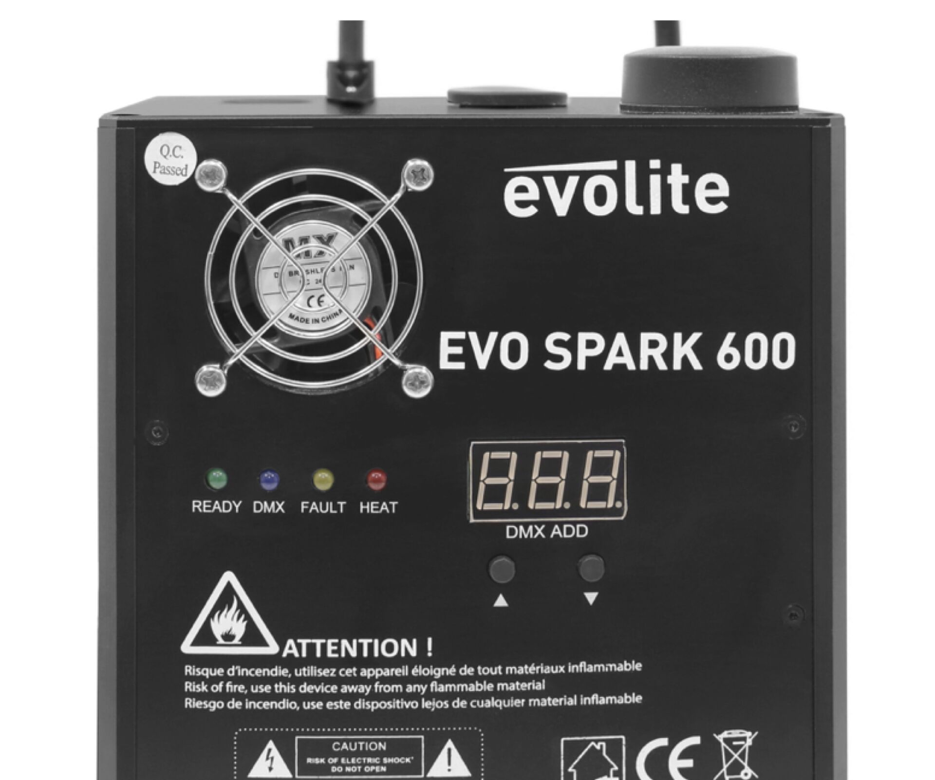 créez rapidement et facilement des projections impressionnantes d'étincelles sur scéne, en toute sécurité avec la paire d'evolite Evo Spark 600. Ces appareils produisent des flammches froides grce au liquide evolite Evo Spark Powder (vendu séparément). Nul besoin d'autorisation spciale, vous serez prêt "mettre le feu" en seulement 3 minutes de chauffe, avec des projections d'tincelles jusqu' 6 m de hauteur. L'ensemble Evo Spark 600 Twin Set peut être déclenché à distance via les télécommandes fournies ou en DMX (2 canaux). Que le spectacle commence !