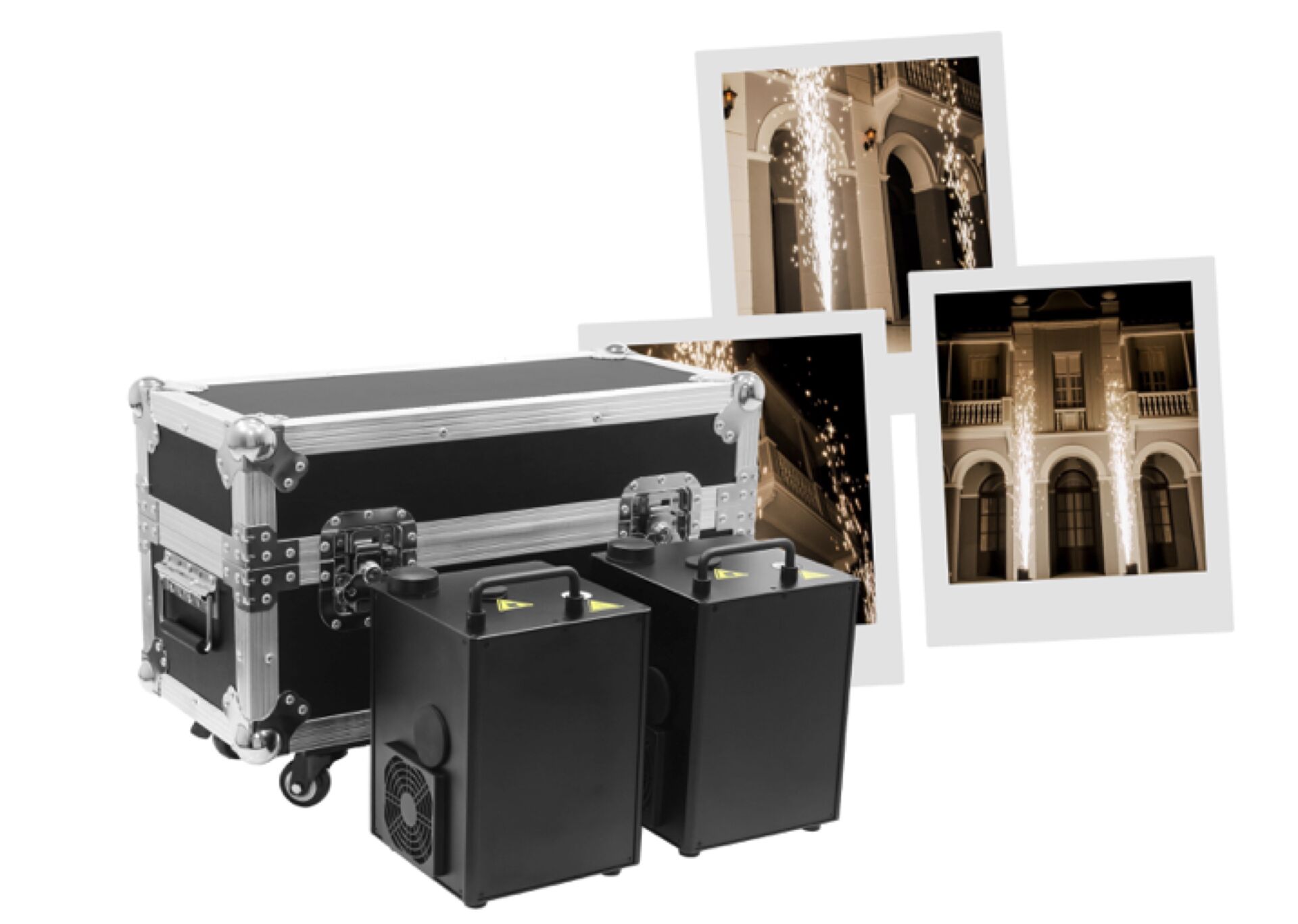 Machine pyrotechnique Set de 2 machines tincelles evolite Evo Spark 600 en flight case, tincelles froides haute qualité, hauteur du jet réglable de 1 environ 6 métres, pilotable par télécommande ou en DMX, un effet surprenant qui fera sensation auprès de votre public !