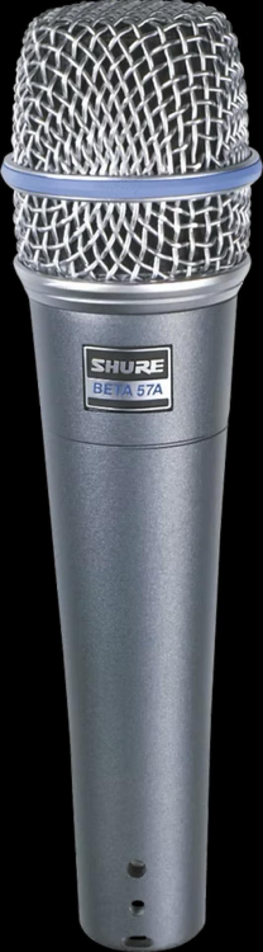 Le Beta 57A est doté d’une capsule supercardioïde dynamique avec grille renforcée compacte, ce qui lui permet d’être placé très proche de la source sonore. Que ce soit pour la reprise d’instruments acoustiques ou d’amplis de guitare et basse, il assure une excellente reproduction avec rejet des bruits ambiants. Particulièrement apprécié des batteurs, ce micro accepte de fortes pressions acoustiques, et sa suspension antichoc réduit considérablement les bruits de mécanique et de vibrations. Les musiciens professionnels en studio ou sur scène l’ont rapidement érigé au rang de couteau suisse des microphones, tant il a su s’imposer en toutes circonstances. Malgré son orientation instrumentale, le Beta 57A peut également convenir à la reprise de voix sur scènes (chœurs) le cas échéant !
