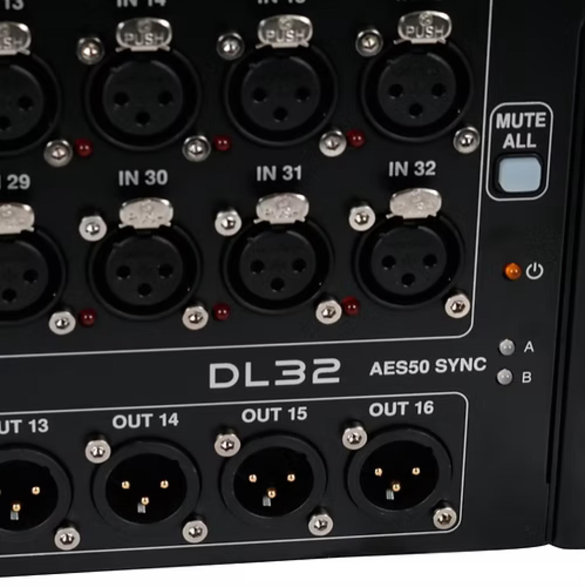 Les consoles numériques comme la Midas M32 ont constitué une véritable révolution dans le monde du spectacle. Le Midas DL32 a été conçu pour étendre les capacités de la M32. Il s’agit d’un boîtier de scène à 32 entrées, mobilisant les légendaires préamplis Midas, et 16 sorties. De quoi ne pas manquer de possibilités lors de vos lives ! L’ensemble est utilisable via un simple câble CTA5 qui permet de placer le DL32 à un maximum de 100 mètres de distance de la console !