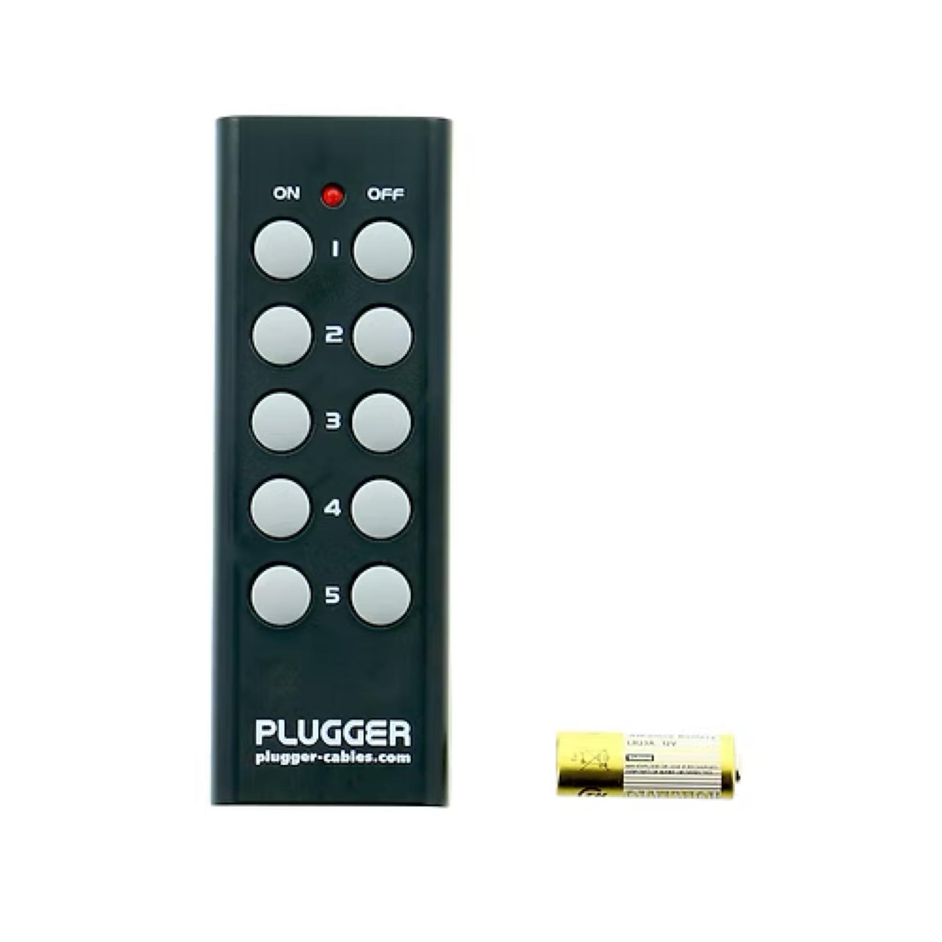 Multiprise électrique norme Française, PLUGGER MPE-5 HF, 5 prises femelles à déclenchement à distance avec télécommande HF, câble d'alimentation de 1,4 mètres, Couleur noire. Pilotez vos jeux de lumière non DMX à distance !