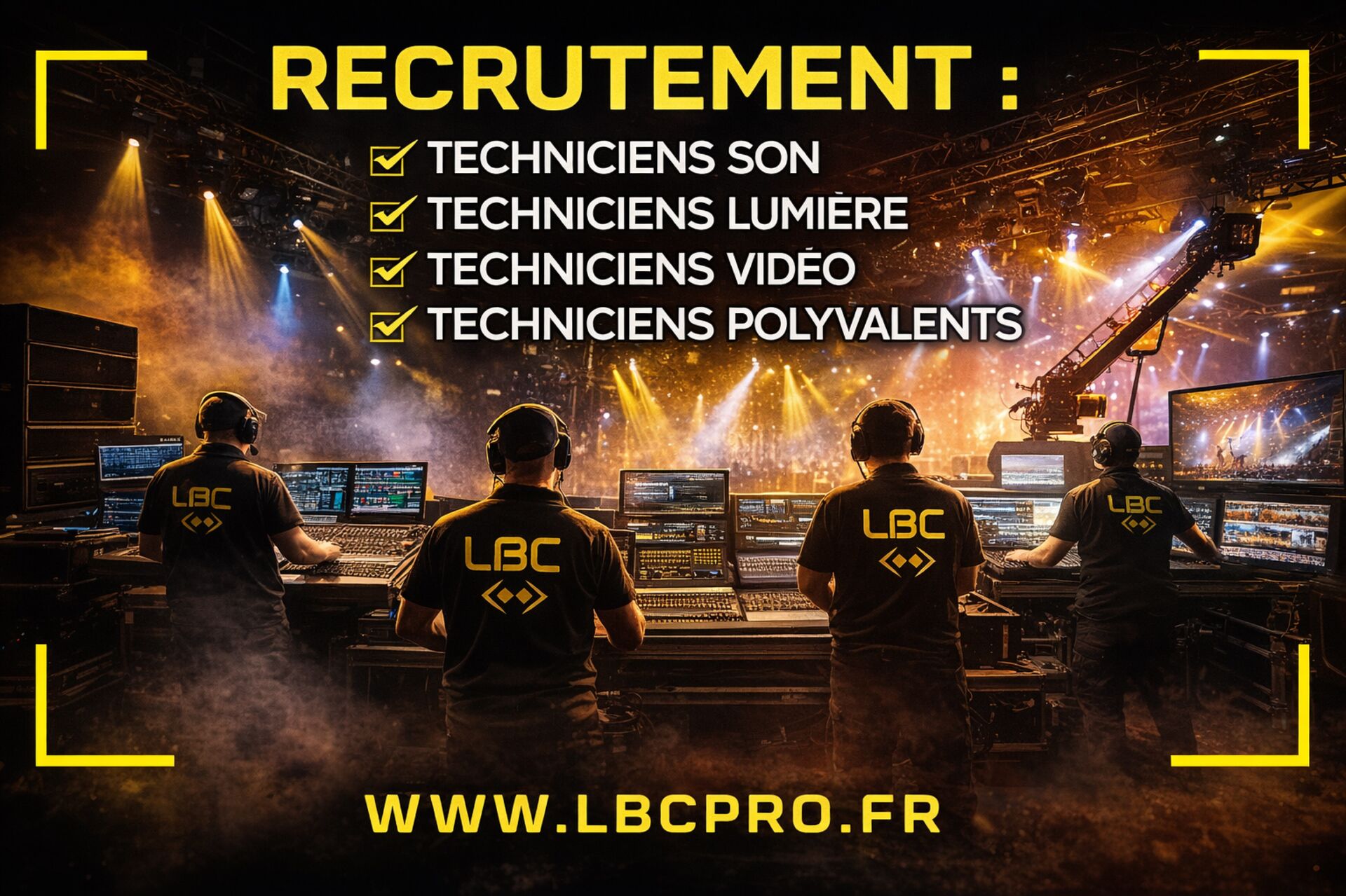 LBC PRO, c'est une petite équipe fixe composée de Boris, Stéphanie, et Guillaume, présente pour vos plus grands projets. Mais c'est aussi une équipe de techniciens indispensables pour la mise en place de vos projets.