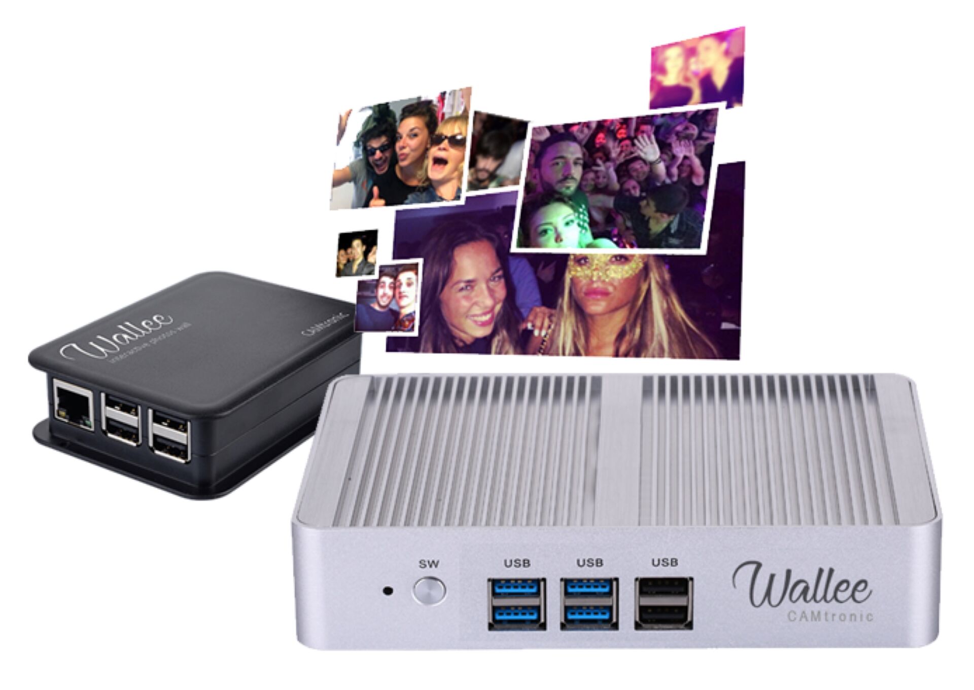 Wallee est un mur de photos interactif. Lors d’un événement, il permet d’afficher en temps réel les photos prises par les participants avec leurs Smartphones ainsi que par les photographes professionnels et les bornes à selfies. Avec Wallee, pas besoin de connexion Internet, le boîtier est autonome et génère son propre réseau Wifi. L’installation est d’une simplicité enfantine : une prise, un écran et hop… un Wallee ! Chaque participant peut alors envoyer directement ses photos au boîtier via son smartphone. En fin d’événement, toutes les photos peuvent être récupérées sur une simple clé USB.