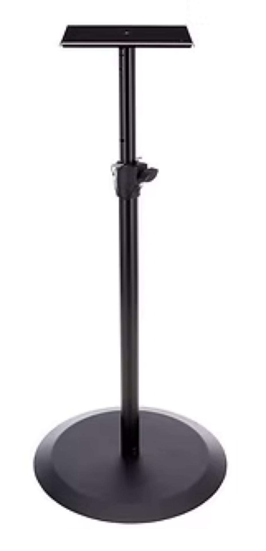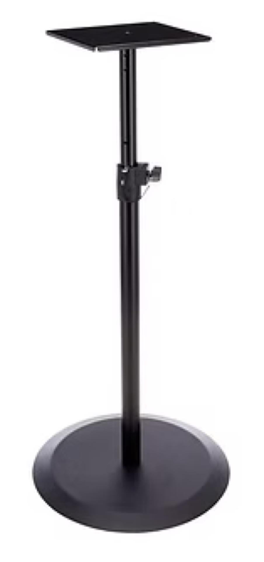 Le support pour enceinte 26740 peut recevoir des haut-parleurs avec des raccords filets de 3/8" et comprend une plaque de support avec quatre points de filetage. Caractristiques - K&M 26740 - Pied d'enceinte monitoring - Pied et base en acier - Base : diamtre de 450 mm - Hauteur rglable : 893 1430 mm - Support d' enceinte: 205 x 245 mm - 4 vis pointe pour fixer l'enceinte - pas de vis du pied: 3/8", 12 mm de longueur - Capacit de charge: 35 kg - Poids : 10,16 kg