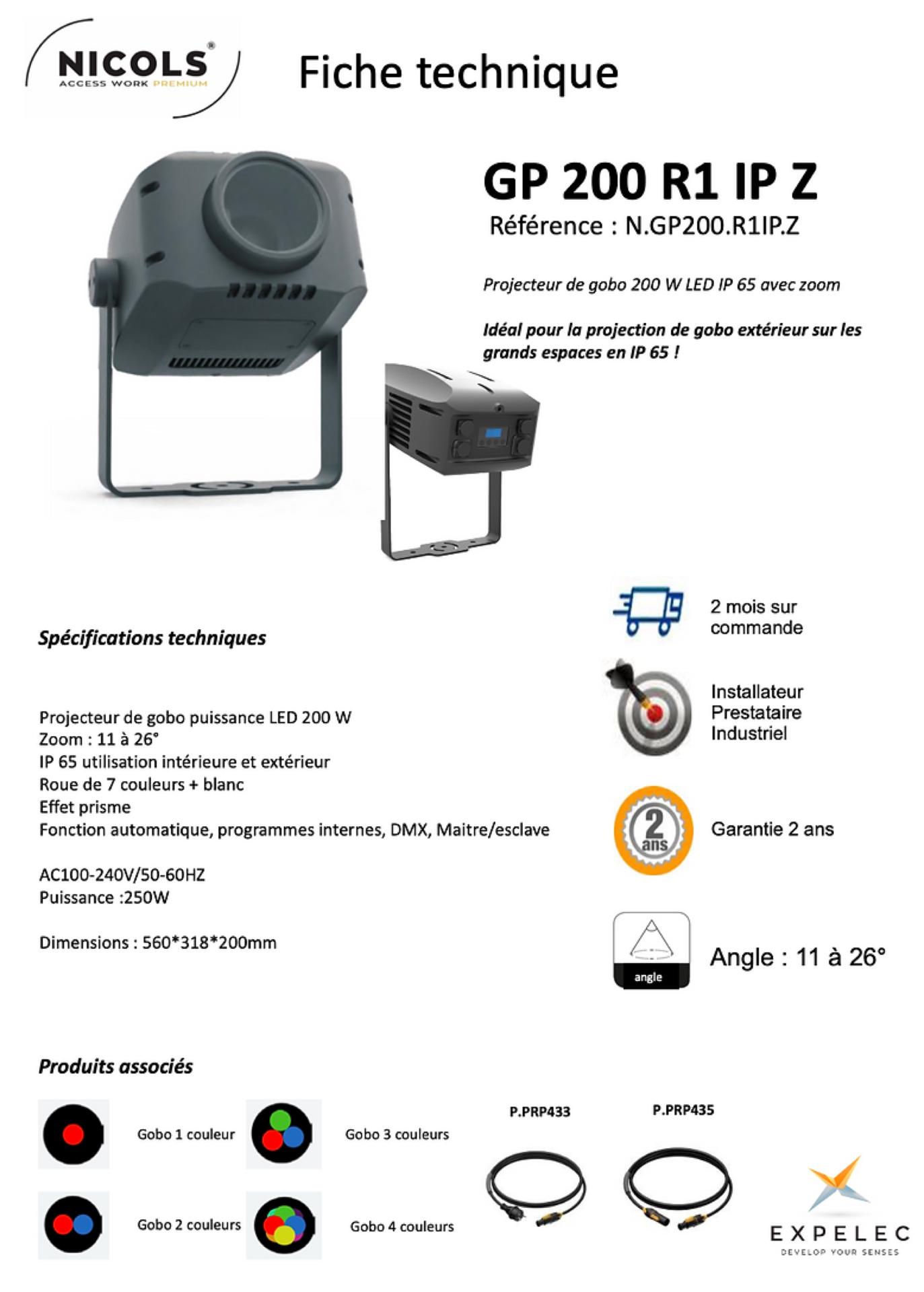 Projecteur GOBO IP 65 avec source LED 200 W, Zoom de 11 à 26°