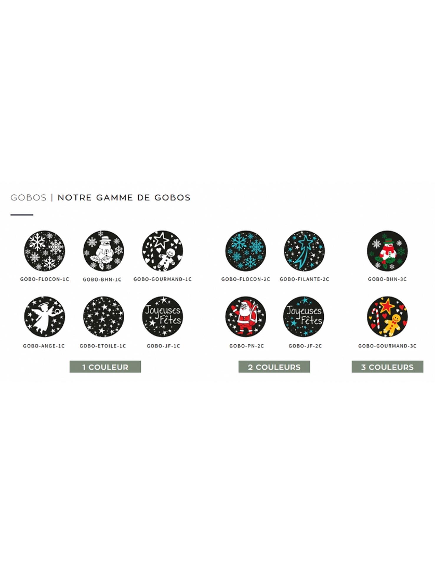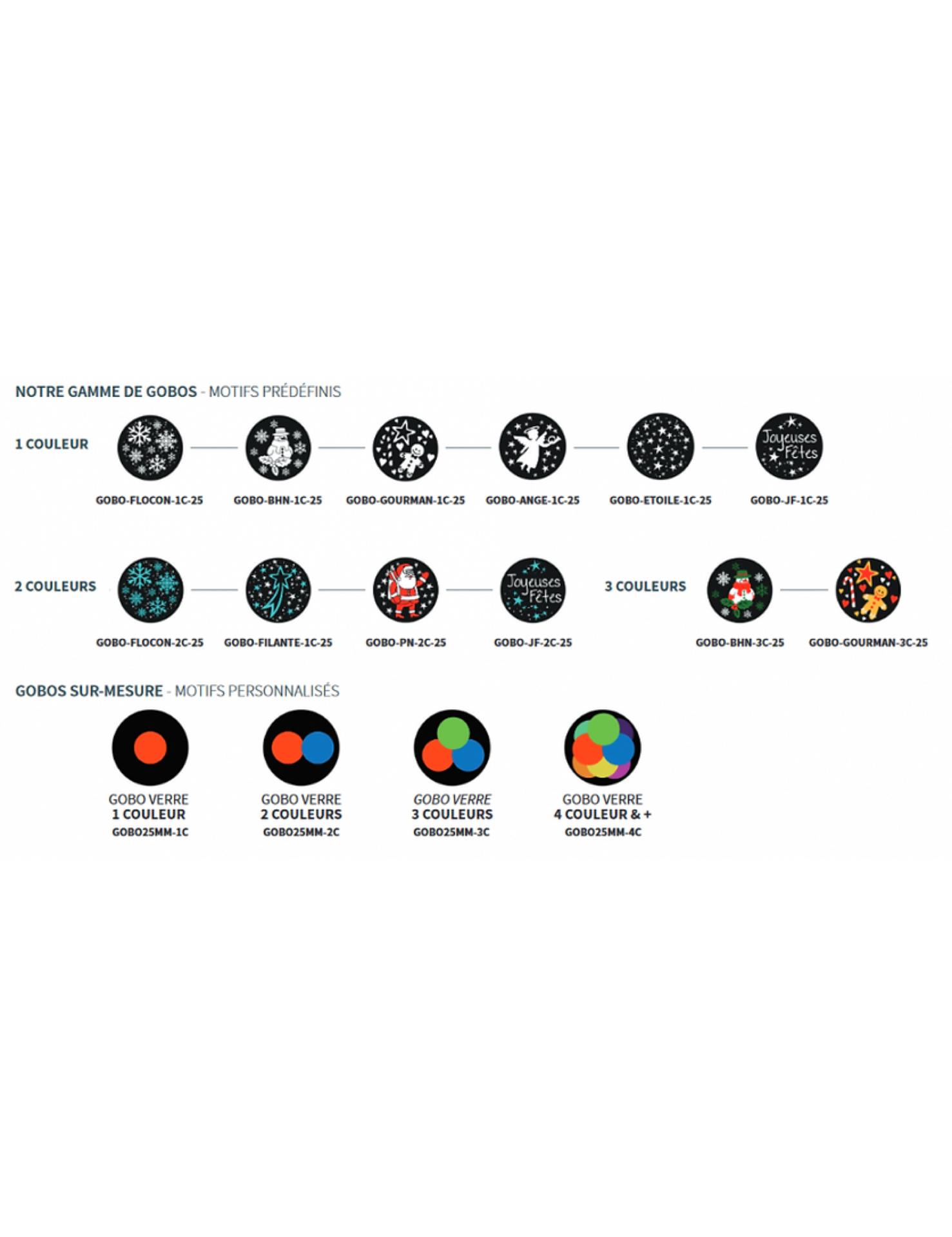 Dimensions des gobos : Extérieur : 25 mm / image : 21 mm