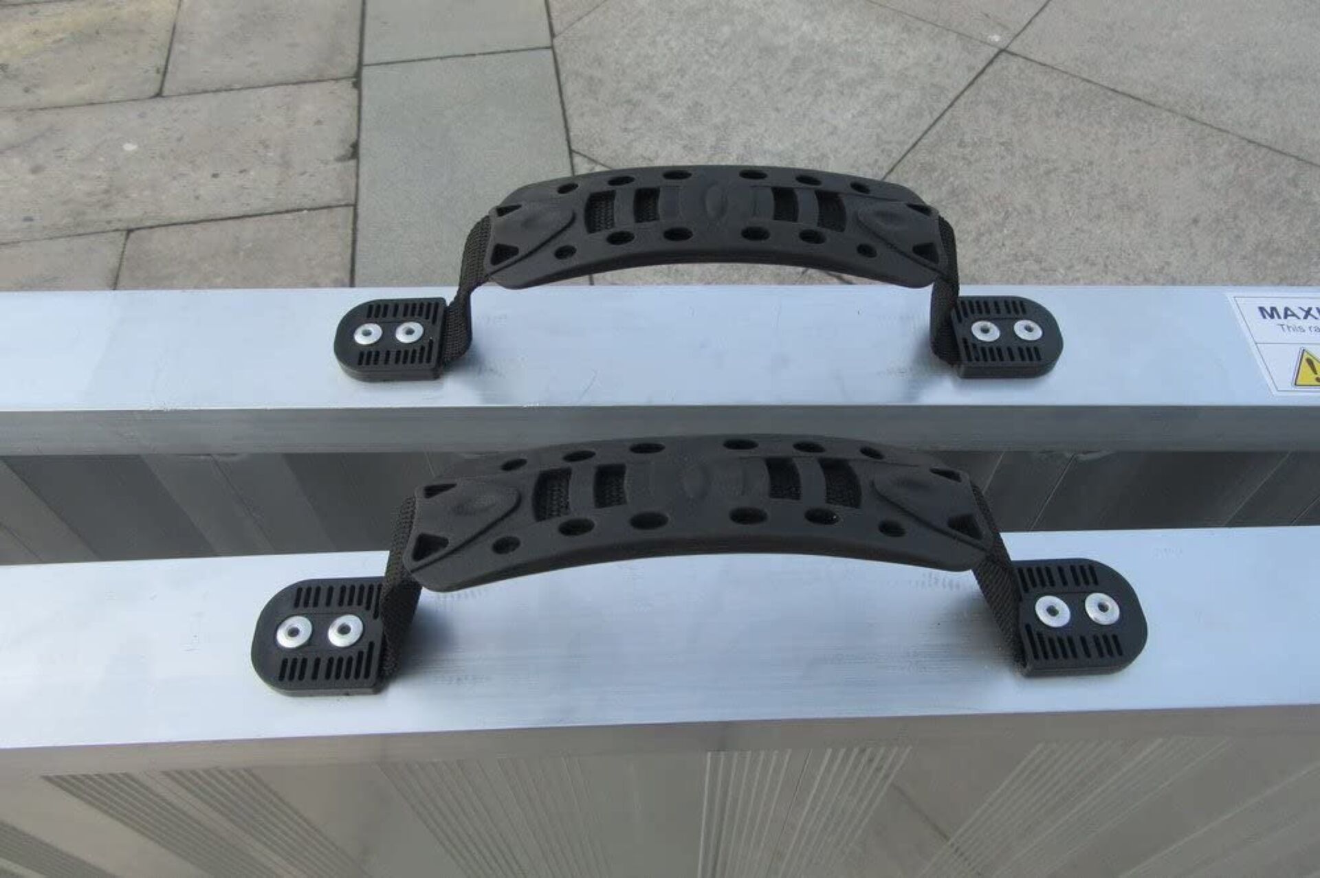 Aluminium anodisé à haute résistance ainsi que la surface ultra-antidérapante.La rampe est équipée d'une poignée de transport confortable et résistante.