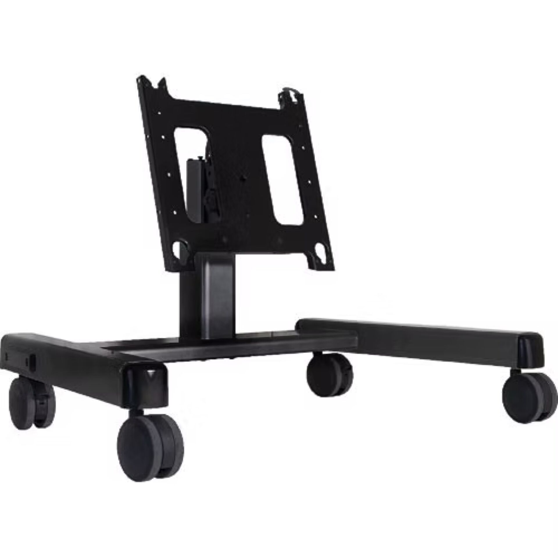 A lightweight mobile cart with a collapsible design that is perfect for interactive touchscreens and confidence monitors.