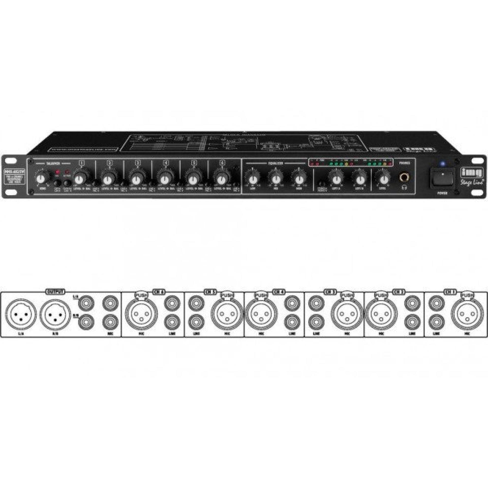 Table de mixage MMX-602/SW 6 voies micro/ligne avec priorité.