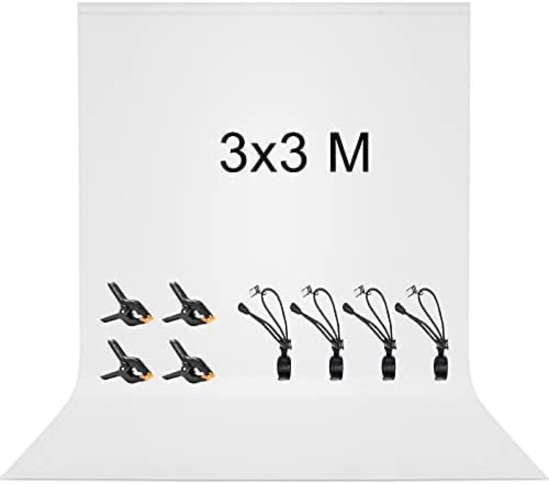 Toile de Fond, Vevelux 3 x 3M Fond Blanc avec 8 Clips Anti-Plis, 100% Polyester Pliable Lavable Durable Écran Blanc pour Photographie, Vidéo, Camera, Photo,.