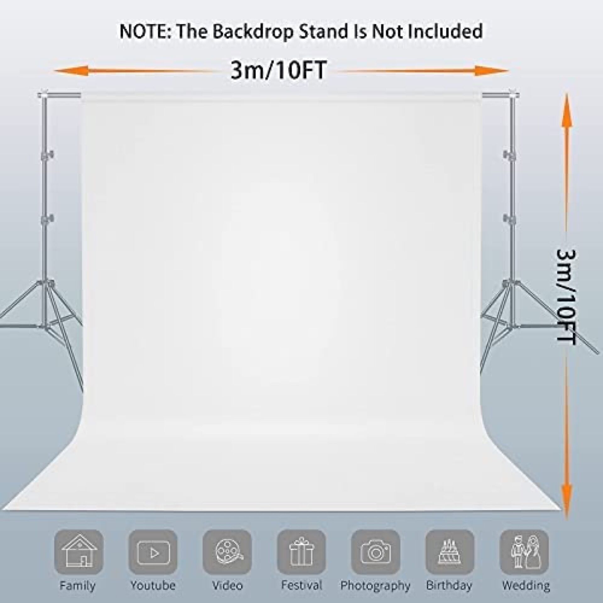 ????【MATÉRIAU 100% POLYSTER】: Ce fond blanc est fait en 100% polyester, l'épaisseur de greenscreen est 120g / m² avec le densité 75D*200D, il est non réfléchissant, ne rétrécit pas, ne se décolore pas, anti-boulochage, et bon sens vertical, moins froissé que les autres et plus durable plus à temps. Remarque : le support de toile de fond n'est pas inclus.