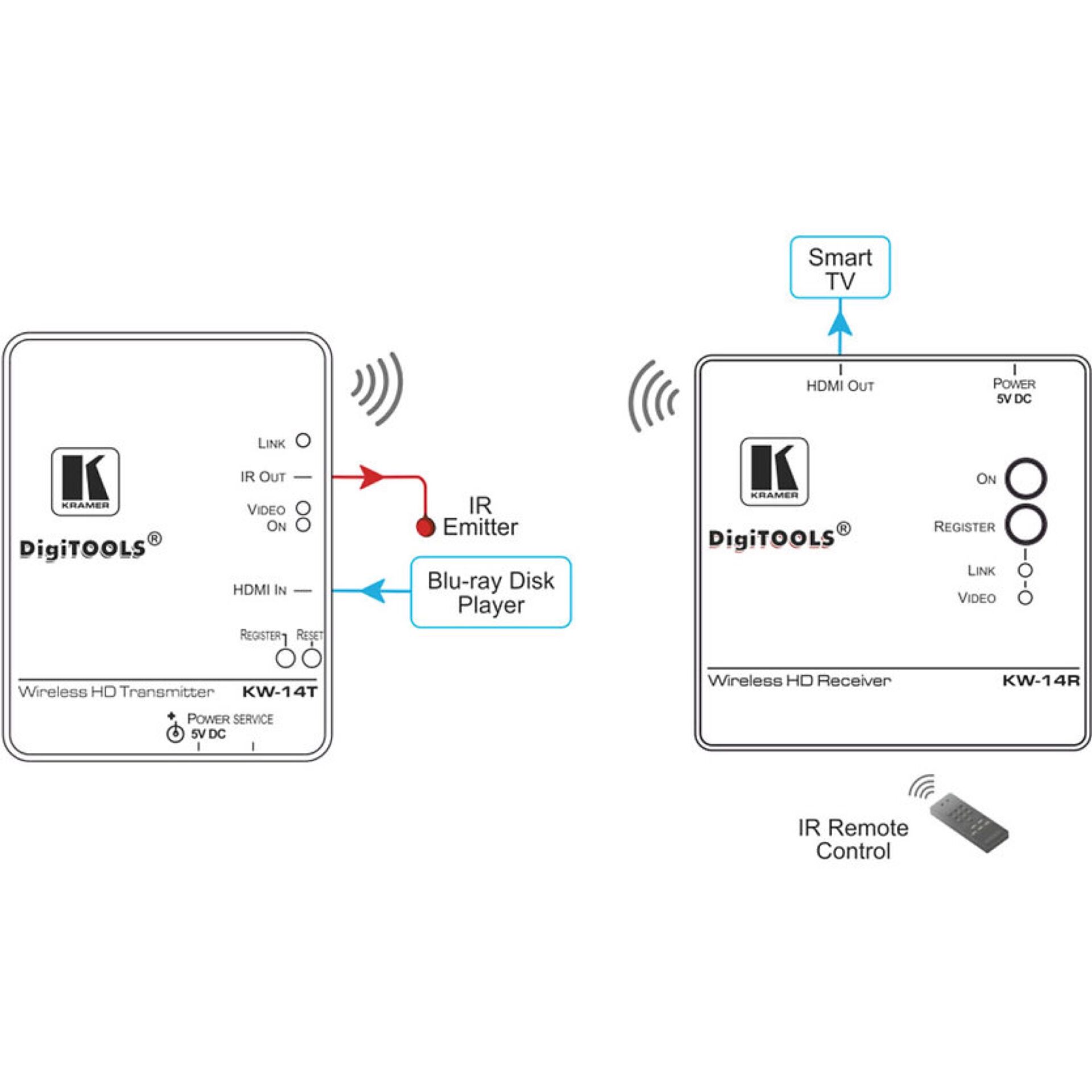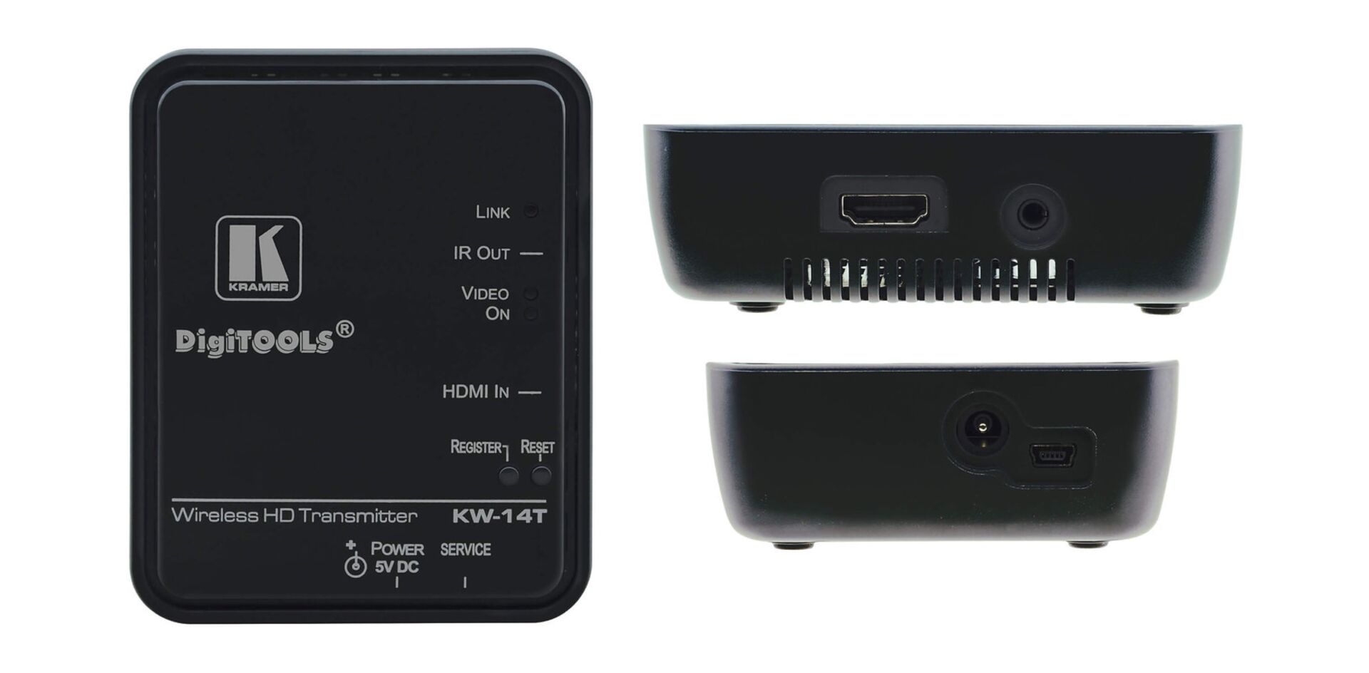 Le KW−14T et le KW−14R sont un émetteur et un récepteur HDMI haute résolution sans fil pour la transmission de signaux en intérieur. Jusqu'à quatre récepteurs KW−14R peuvent être connectés à l'émetteur KW−14T et jusqu'à trois émetteurs KW−14T peuvent être connectés à un récepteur KW−14R.